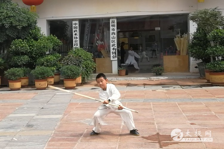 陈奕名参加太极网举办的“怀山堂杯”第四届国际太极拳网络视频大赛,表演太极棍。
