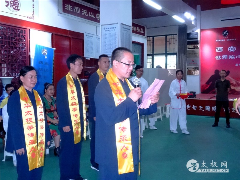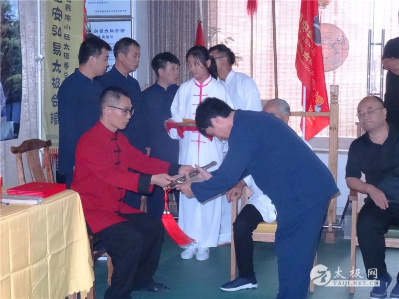 (太极网讯)古城西安,被武林誉为“小陈沟”,习武之风颇浓。太极拳,流派纷呈百家争鸣,更是名家好手辈出,依托深厚的武术文化氛围和土壤,太极拳的传承在这里延续生长。 见证人职承禹、张建文、洪斌,嘉宾代表郭铭科(从左至右) 8月5日,太极拳名家职永成收徒仪式于西安举行,刘乾、郭景周、马秀忠、谭红、韦荣建、等五名太极拳爱好者通过传统拜师仪式正式拜入职永成老师门下,成为陈式太极拳传承人。太极网创始人、温县太极拳传承人联合会主席刘洪奇先生应邀出席活动并担任仪式主持人和见证人。 收徒仪式遵循传统,职承禹、刘洪奇、张建文、洪斌等嘉宾担任本次仪式的见证人,应邀出席活动的嘉宾还有郭铭科、李英等,职永成弟子郭延涛、吴信祖到场观礼。 太极网创始人刘洪奇主持仪式 主持人刘洪奇宣布仪式开始后,全体嘉宾入座,见证人介绍拜师弟子。 职永成向历代太极拳先贤敬香祭酒,以告收徒传承再续薪火。拜师仪式简洁庄重,新入门弟子依次上前递交拜师帖、虔诚跪拜叩首并向师父师母敬茶行礼。师父回帖,师母回赠太极服。 ![]() 新弟子刘乾、谭红、郭景周、马秀忠、韦荣建(从左至右) 老弟子郭延涛、新弟子刘乾分别代表发言。郭延涛对新入门师兄弟表示欢迎,希望大家精诚团结,互相学习,共同弘扬师门、弘扬太极拳。刘乾表示非常荣幸拜入师门成为太极拳传承人,拜师增强了太极传承和使命感,后续会继续努力深造,为太极拳的传承和传播不懈努力。 职承禹老师讲话 刘洪奇表示,职永成师从太极拳发源地陈家沟,精通陈氏太极拳大小架,职老师德艺双馨、为人低调谦逊,是太极良师。祝贺新弟子拜师成功,希望大家有传承和传播太极拳的责任担当,做合格的太极拳传承人。 表演 职永成老师对参加收徒仪式的嘉宾表示感谢。职永成说,感谢弟子们的信任,结下师徒情谊,对自己同时对弟子都有了要求,太极拳的传承和传播要更加严格地严于律己,大家携起手来共同为国粹太极拳的传播发展贡献力量。 ![]() 集体合影 太极档案: 职永成,1969年6月出生,男,河南温县人。陈氏太极拳大架第十二代传人,师承陈小旺。陈氏太极拳小架第十三代传人,师承陈永福。中华太极拳传承人,国家武术六段,国家二级裁判员,国家武术段位指导员,国家武术段位考评员,中国温县国际太极拳年会名师,中国武术协会会员,陕西省武术协会会员,西安市武协会员,陕西省太极拳一级辅导员,西安太极拳小架协会副会长,西安陈氏太极拳传承人联合会副会长,现任西安弘易太极会馆馆长兼总教练、世界陈小旺太极拳总会西安分会会长、西安市莲湖区武协副主席。 责编:太极网小珂 |