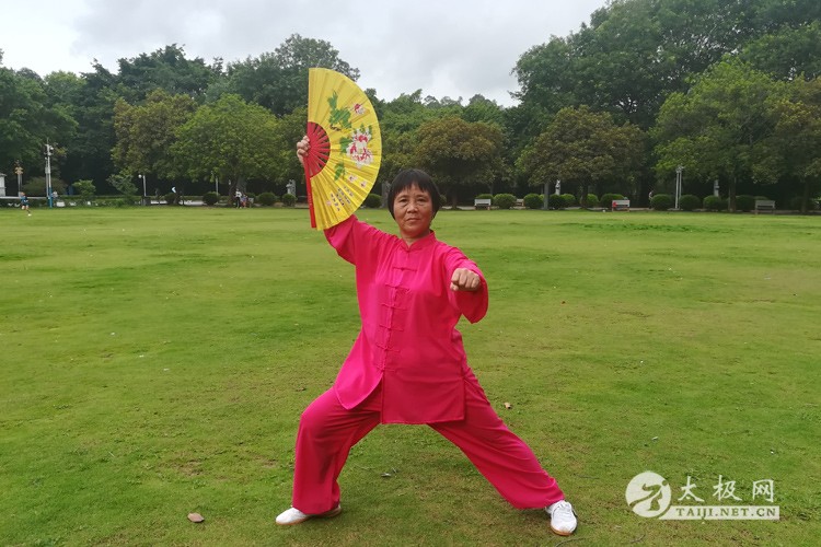 邓玉卿参加太极网举办的“怀山堂杯”第四届国际太极拳网络视频大赛,表演太极功夫扇。