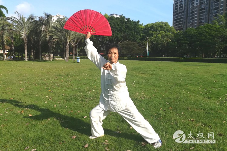 张茂莲参加太极网举办的怀山堂杯第四届国际太极拳网络视频大赛,表演太极功夫扇。