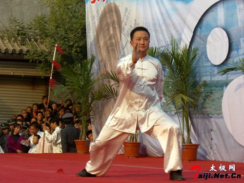 在太极拳发源地——陈家沟做名家表演 陈冲,男,1973年出生,温县陈家沟人。高中文化,陈氏二十世、陈式太极拳第十一代传人,“国家一级拳师”,“国家武术一级裁判”, “太极十杰”之一、陈家沟太极拳“八大天王”之一。自幼随父陈俊凌习家传陈氏太极拳,擅长陈氏太极拳各种套路、推手、器械,现任陈家沟太极拳武校校长兼总教练,中国陈家沟太极拳总会副会长,陈家沟太极拳武校台湾分校高级顾问,徐州陈氏太极拳研究会中华太极馆总教练,尤精陈氏太极拳小架,功法纯正。1993年起,开始参加国内的各种比赛;多次获得国内外太极拳大赛冠军。2000年创办温县太极拳武校,其学生多次在国内外太极拳大赛中蝉联太极拳推手擂台赛、锦标赛重量级冠军。本人被《陈式太极拳志》、《陈家沟功夫》、《太极圣地陈家沟》、《中华武术》、《焦作日报》等、书刊、杂志宣传报道。 1993年起,开始参加国内的各种比赛; 6月获“河南省武术观摩赛”男子太极拳第一名; 9月获河南省太极拳年会太极交手擂台赛70公斤第一名; 94年获河南省太极拳、剑、推手赛70公斤第一名; 95年开始参加裁判工作,参加三届年会推手擂台赛场上执行裁判,三次参加河南太极拳、剑、推手比赛场上执行裁判; 2000年始创办陈家沟太极拳武校; 同年8月带队参加2000年第六届国际太极拳年会,陈鹏获男子交手擂台赛60公 斤级冠军,太极拳一等奖,刘新波获男子交手擂台赛75公斤级冠军,孙涛获男子太极拳一等奖; 2001年春节带队参加温县第七届太极拳、剑、推手赛,陈鹏获男子推手65公斤冠军,男子传统拳、男子规定拳两个第一名,刘新波获男子70公斤以上级冠军; 2001年4月带队参加河南省太极拳、推手赛,陈鹏获男子60公斤级推手第一名,马冬丽获女子56公斤第二名,陈永锋获男子70公斤第三名,刘新波获男子80公斤冠军; 本人被《陈式太极拳志》、《陈家沟功夫》、《太极圣地陈家沟》、《中华武术》、《焦作日报》等、书刊、杂志宣传报道。 2001年8月学生刘新波参加全国太极拳、剑、推手锦标赛(顺德)获80公斤级第一名。 2002年河南省推手锦标赛,陈鹏获65公斤级第一名。 2002年8月中国焦作国际太极拳年会带队参加比赛、运动员刘新波、陈鹏、吴海波等共获5枚金牌。 擅长陈式太极拳小架,小架一路72势特点是:小巧玲珑,柔和自然,阴阳开合,动静相称,外若处女,内似金刚,儒雅潇洒,舒展大方。 小架二路42势,其特点是:虚实变化,动静结合,呼吸浮沉,一气呵成,发劲刚勇,收蓄兼并,运行疾速,外刚内柔。 电话:0086-391-6188998 3338889 手机:13017516444 E-mail:chenchong73@126.com |