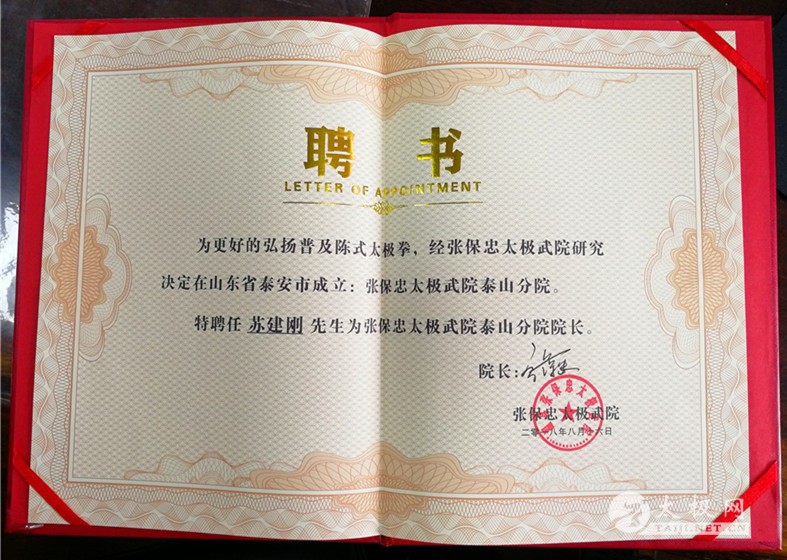 (太极网讯)近日,张保忠太极武院泰山分院揭牌暨第二届(泰山)陈氏太极拳高级培训班开班仪式举行。经张保忠太极武院领导决定通过成立泰山分院,任命苏建刚为分院院长,太极名家张保忠和培训班学员欢聚一堂,共贺分院成立。 泰山分院的成立为泰山市的太极拳爱好者提供了一个广阔的交流和学习的平台,将促进陈式太极拳在泰山市及其周边地区更好地发展和交流。 张保忠向苏建刚授牌和颁发聘书 培训班现场,张保忠与当地太极拳爱好者零距离接触,为大家答疑解惑,解决了很多平常习练太极拳时遇到的问题。他 告诫新入门的学员要认真习练太极拳,用心去体悟太极文化。希望武院的成立能培养出更多优秀的太极拳传承人,助力太极文化传播推广。 培训班现场 苏建刚在接受张保忠太极武院泰山分院院长聘任时表示,感谢张保忠院长对自己的信任,自己将会更加努力,以更加严格的标准来要求自己,同时继续加强太极拳的学习,更好地为拳馆和学员服务,为弘扬太极拳,传播太极文化不懈努力。 |