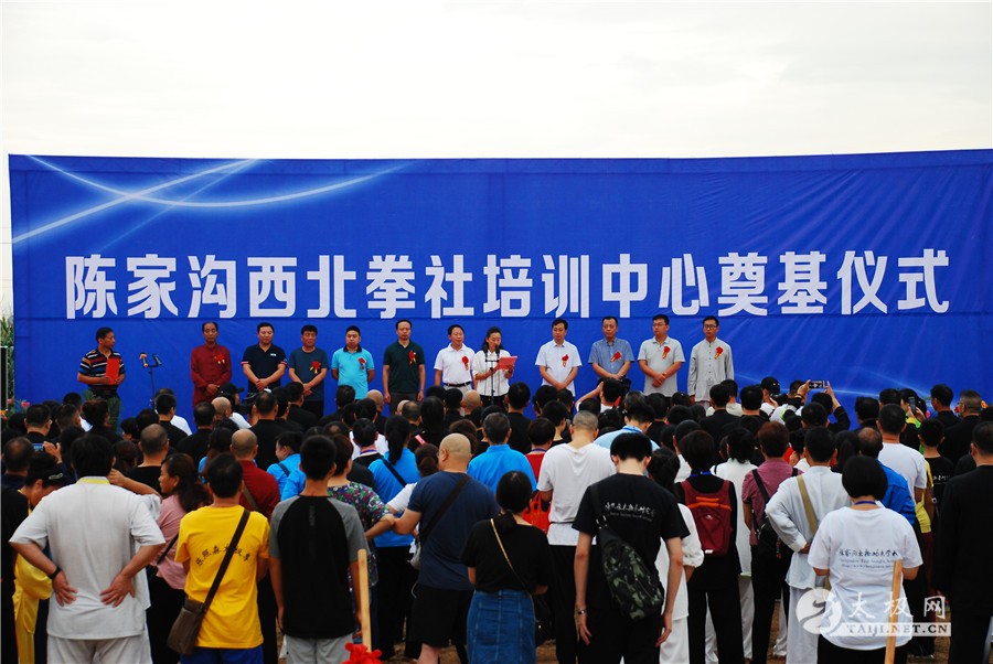 8月18日,陈家沟西北拳社培训中心奠基仪式于太极拳发源地温县陈家沟隆重举行,来自全球各地的陈照森大师弟子、再传弟子及太极拳爱好者数百人共同见证这一历史时刻。 奠基仪式现场航拍视频 出席奠基仪式的领导嘉宾有: 温县政府副县长 李美玲 温县县委宣传部副部长、县太极拳武管中心主任 宋明军 温县旅游局局长 王振勇 温县体育局副局长 任海林 温县赵堡镇镇长 张德诚 陈家沟村委会书记 陈景元 国际太极拳大师 陈照森 陈家沟太极拳功夫学校副校长 陈志伟