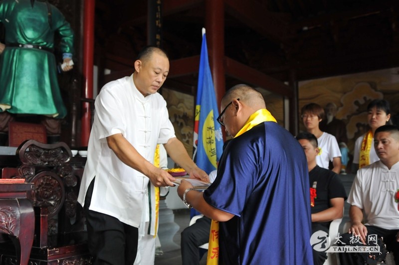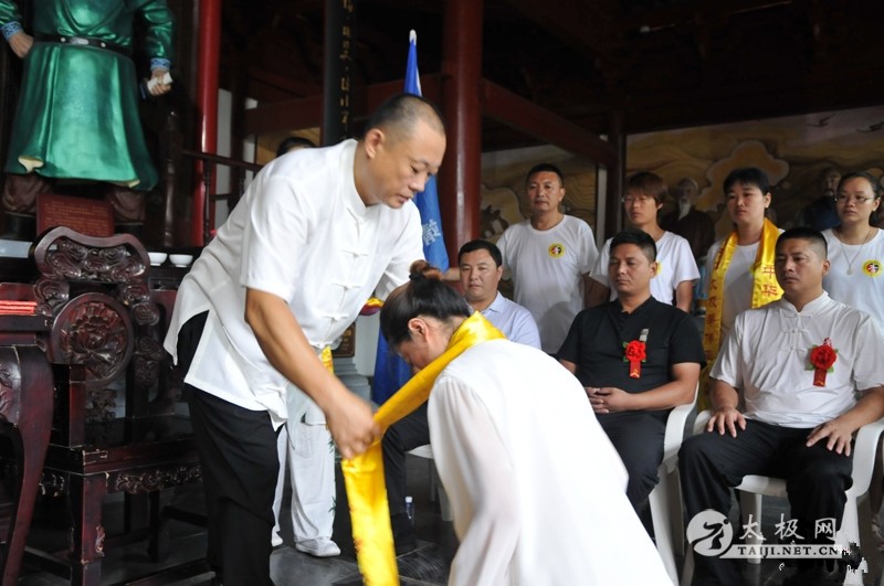 (太极网报道)为积极响应太极拳发源地温县“千名拳师走进陈家沟”的活动号召,8月19日,陈家沟太极拳名家段卫星带领众弟子学员走进太极圣地陈家沟寻根拜祖。 在众位嘉宾和段卫星弟子理事会的见证下,段卫星老师收徒祭祖仪式于太极拳祖祠的祖师堂举行,四位新弟子通过传统拜师仪式拜入段卫星门下,成为陈式太极拳第十三代传人,太极网创始人刘洪奇应邀主持仪式。 出席活动的嘉宾有: 温县体育局副局长任海林 温县太极拳武术运动管理中心办公室主任刘高杰 陈家沟家族理事会陈国胜 太极拳名家陈志强 太极拳名家陈绍杰 正阳大春文武学校校长王大春 陈家沟太极拳功夫学校副校长陈志伟 广东客属文化产业开发投资有限公司董事长、陈照森太极拳研究会理事长郑辉宇 陈照森太极拳研究会郑州分会会长刘明龙 大春太极山庄董事长王大春 以及段卫星老师的众师兄弟等 拜师仪式遵循传统礼节,简洁而庄重。段卫星老师向太极拳祖师及历代宗师上香、行叩拜礼,随后新入门弟子依次上前递交拜师贴、敬拜师茶、行拜师礼,师父回礼。在众人的见证下,师父段卫星带领新入门弟子向太极拳始祖陈王廷行叩拜礼,拜师礼仪圆满完成。 刘洪奇说,段卫星老师是陈家沟走出去的优秀太极拳传承人代表,在外传拳授业多年,影响巨大。对段卫星老师喜收新徒以及新弟子得遇良师表示祝贺。在太极拳发源地温县陈家沟举行拜师仪式意义非凡,通过传统文化礼仪来确立师徒传承关系,对每一位传承人来说既是荣誉更是责任,祝愿大家在太极大道上走的更远。 温县体育局副局长任海林在讲话中对段卫星老师喜收新徒表示祝贺,对大家为太极拳发源地温县的大力支持表示感谢,希望大家携起手来共同为太极拳的弘扬传播积极贡献。 新入门弟子表示,拜入段卫星老师名下深感荣幸,通过陈家沟传统拜师仪式深切感受到了太极拳传承的使命感和归属感。 段卫星表示老师向全体嘉宾表示感谢,在对弟子的训话中,段卫星嘱托希望新入门的弟子要肩负起传承人的责任担当,恪守门规祖训,坚持认真学习太极拳、用心体悟太极文化,为太极拳的传播和推广积极奉献。 |