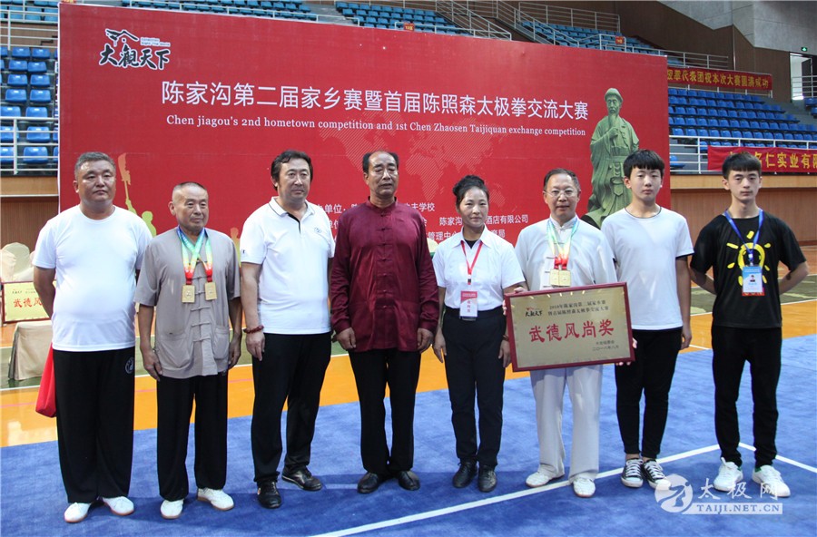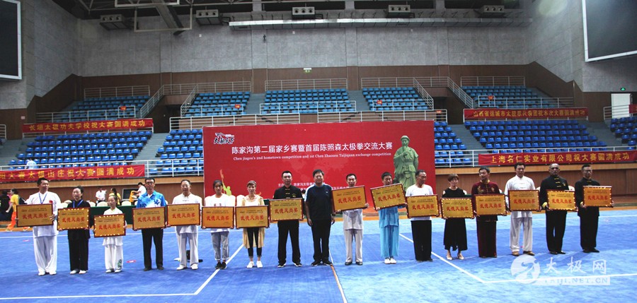 大赛现场盛况 (太极网讯)8月19日,千余名太极拳友在太极圣地陈家沟经过两个比赛日的激烈角逐,2018陈家沟第二届家乡赛暨首届陈照森太极拳交流大赛圆满落下帷幕,各代表队在太极拳发源地陈家沟的赛场上奋力拼搏,交流切磋,充分展现了太极拳的无穷魅力,大赛颁奖典礼于陈家沟太极拳国际交流中心举行。 闭幕式主席台嘉宾 出席大赛闭幕式的嘉宾有: 温县赵堡镇党委书记、陈家沟景区管理局局长王世谦 温县体育局副局长任海林 温县体育局副局长王新志 温县太极拳武术文化管理中心办公室主任刘高杰 大赛执行主任、国际太极拳大师陈照森 大赛仲裁委员会主任原占国 大赛总裁判长李模岐 陈照森太极拳研究会会长郑辉宇 温县赵堡镇党委书记、陈家沟景区管理局局长王世谦宣布大赛闭幕。 国际太极拳大师陈照森致闭幕词,陈照森说,历时两天的大赛在各级领导的关心和支持下,在全体运动员、裁判员、工作人员的团结协作下圆满闭幕。各代表队都表现优异,在太极拳发源地陈家沟的赛场上展现出了良好的精神面貌和竞技水平。代表组委会向全体人员表示诚挚的谢意,同时期待第二届大赛陈家沟再相见。 本次大赛总裁判长李模岐先生宣布集体项目成绩、太极之家、最美太极家庭和获得大赛“武德风尚裁判员”、“优秀组织奖”和“武德风尚奖”代表队名单。 温县太极拳武术文化管理中心办公室主任刘高杰、大赛仲裁委员会主任原占国、陈照森太极拳研究会会长郑辉宇、温县体育局副局长王新志、国际太极拳大师陈照森、大赛总裁判长李模岐、温县体育局副局长任海林、温县赵堡镇党委书记、陈家沟景区管理局局长王世谦依次上台为各获奖代表队颁奖。 温县太极拳武术文化管理中心办公室主任刘高杰为“集体项目三等奖”获奖运动队颁奖 仲裁委员会主任原占国为“集体项目二等奖”获奖运动队颁奖 温县体育局副局长王新志为“集体项目一等奖” 获奖运动队颁奖 国际太极拳大师陈照森为“最美太极家庭”获奖运动队颁奖 温县体育局副局长任海林为“优秀组织奖”获奖代表队颁奖 温县赵堡镇党委书记、陈家沟景区管理局局长王世谦为“武德风尚奖”获奖代表队颁奖 各代表队等候入场接受颁奖 大赛各代表队合影留念 本次大赛吸引了来自河南、山东、上海、江苏、黑龙江等二十多个省份及德国、印度共79支代表队1100余名运动员相聚太极圣地陈家沟共襄盛会,在陈照森太极拳体系全球各地弟子学员的大力支持和参与下圆满落下大幕。 |