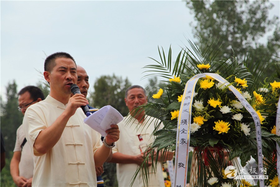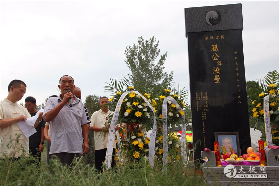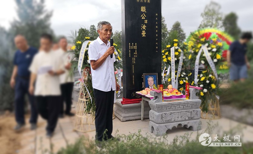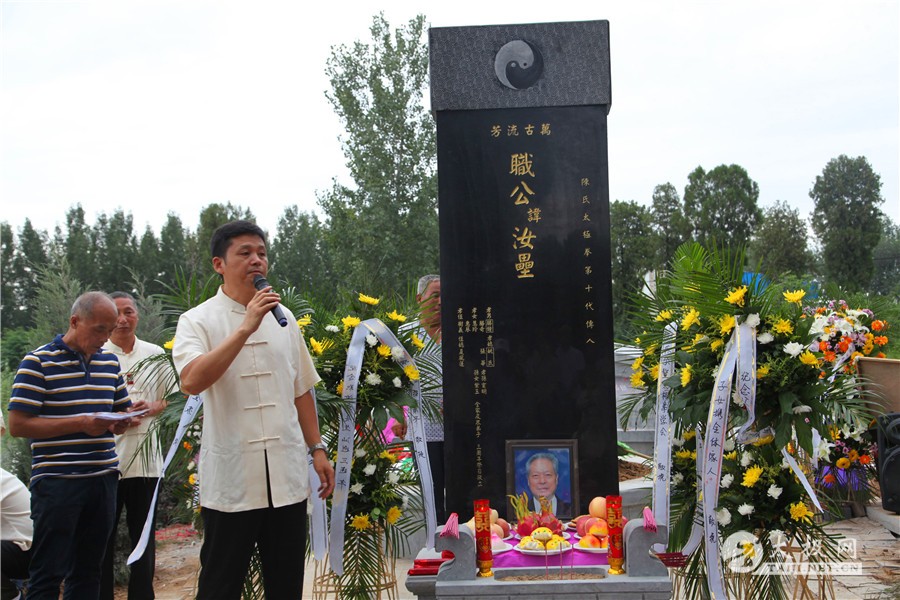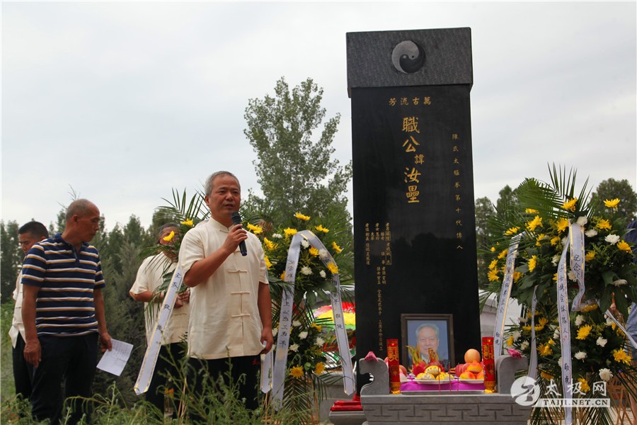 (太极网报道)8月18日上午,著名陈氏太极拳小架传人职汝垒先生三周年祭奠暨立碑仪式在河南温县东南冷村举行。陈家沟陈氏家族理事会、陈家沟历史文化研究会一行七人在陈氏族长陈景安先生的带领下齐聚东南冷村,参加仪式的还有太极网创始人,温县太极拳传承人联合会主席刘洪奇、东南冷村委主任张自来、东南冷村职氏家族代表职长生、西安陈金鳌太极拳学会的代表李树发、王成新、赵雁军、张勇刚、潘永琪、张周然及职汝垒先生弟子、再传弟子代表、家人及亲属等近两百人。 活动由东南冷村职氏家族代表职长生和西安陈金鳌太极拳学会秘书长彭龙贵共同主持。仪式首先由陈景安、陈一华、陈清环、刘洪奇、职汝垒先生的两个师弟李树发、王成新等人在悠宛的器乐声和鞭炮声中共同揭碑。亲属代表和弟子代表分别敬献花圈、花篮。 陈家沟陈氏家族理事会会长陈一华首先致辞,他首先对职汝垒先生表示深深的追思,充分肯定了先生在弘扬太极拳方面的突出贡献,他说,如果没有广大太极拳爱好者、传播者,就没有今天的陈家沟,并表示家族理事会愿意在传播弘扬太极拳方面为大家提供服务和支持。 温县太极拳传承人联合会主席刘洪奇也在讲话中回忆了与职汝垒先生的交往,同时肯定了先生在太极拳发展中的地位,希望先生开创的西安陈金鳌太极拳学会不断发展壮大。 西安陈金鳌太极拳学会现任会长刘永强代表学会对东南冷村委会、太极网和陈家沟陈氏家族理事会表示感谢,希望各方在围绕墓园建没、先生故居建设及下一步太极文化基地规划等方面继续支持,实现其恩师职汝垒先生挚爱一生的太极拳事业的心愿,让太极拳造福更多的人。 随后,东南冷村代表张自来、先生的弟子代表阎华、亲属代表职职胜奇分别致词,追忆先生!最后举行了壮严肃穆的祭奠仪式,嘉宾、学会各主要代表、弟子、再传弟子、亲戚、子女、孙辈分别上香祭拜,悠悠唢呐声,久久回荡在东南冷村上空。祭奠仪式结束时,天上下起了沥沥细雨! 据悉,职汝垒先生的墓碑由陈家沟陈氏家族理事会、陈家沟历史文化研究会、家人及众弟子、温县东南冷村委会共同敬立,先生的墓园设计规划精致壮严,创意新颖,处处体现传统的太极阴阳理念和九宫格局,且在后碑上将陈氏小架职汝垒支脉传承普系及陈氏小架64式图谱回环线刻,别具太极文化特色,是一处极具特色的太极文化标志性基地。 附:《东南西北太极人之职汝垒》专题片 责编:张欢 |