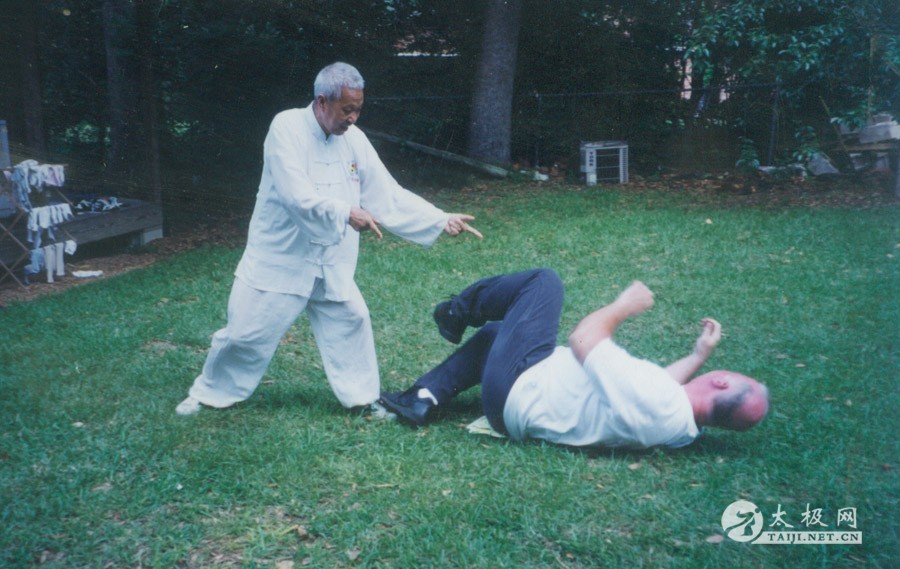 | 黄伟儿/纪东艺(美国) 陈庆州在美国 生活在无忧无虑的美国,学习功夫和武术是一种享受,也是一般人用来消磨时间运动。我们也像许多美国人一样,学习过不同的武功,也花了多年的时间学习太极拳和气功。然而当一九九四年冬我们目睹了陈庆州大师在美国进行的一场“十分惊人”的比武事件后,改变了我们对太极拳的认识,也给了美国太极圈一个极大的震撼。那时谁也没想到这位白发苍苍的长者会改变了我们一生。六十岁走出国门威振海外 一九九四年冬,由他的入门弟子,美国白人金太阳主办,应美国国术总会的邀请,陈庆州大师第一次走出国门访问美国。当来到加州圣何西州立大学讲学时,该大学校长突然报道,说外面来了三百多人向你挑战,要求和你比武,看你敢不敢接受挑战?陈大师沉思后说,不接受怎么样?校长说:“不接受就低下头,弯着腰,举起双手去见他们,表示投降,让各媒体报导后你回中国大陆”。陈大师听后昂首起立,说:“接受挑战”!在校长的带领下,随同校内外师生六十多人来到体育训练大厅众多挑战者面前。这时从人群中走出两位代表,一位会讲中文的美国人说“都说美国人好战,不错,我们就是好战。不论来什么人,我们都要和他较量”。另一位彪形大汉走到面前,用手拍拍陈大师的大腿,又指指他的胳膊,意思是说:“你的大腿还不如我的胳膊粗”。美方组织的各门派六十名强手耀武扬威的排成一队,而六十岁的白发老人时值冬日,只穿一身秋衣,独自一人准备应战!这种场面让在场的记者们纷纷表示太不公平了。 第一个进招了,他十足的凶猛发力被陈大师的引劲化解,连连摔倒。在两个小时的连续对招中,所有的挑战者被大师的太极神功所击败。当击倒最后一个彪形大汉时,大师长长出了一口气,他浑身的衣服都被汗水所湿透。在场之人无不为之惊叹!(其中有二十多人在擒拿格斗中受伤,回去时都不能开车)而我们这些在场的美籍华人和台湾人士个个觉得精神十足,倍感自豪。著名的台湾武术家徐纪先生为赞扬陈大师为中华民族争光的心情,特为陈大师举行了庆功招待会,在会上国术总会副会长钟万年先生向陈大师举杯庆贺,并向陈大师介绍了美国的风情和华人的情况,最后带领大家一起高唱《龙的传人》。一时间新闻媒体竞相报导,美国各地学校,武术组织也纷纷来电相约邀请。第二天由加州大学校长主持仪式,大学领导和武术博士翁启修率武术系全体师生向大师颁发标着“陈庆州大师惠存:身怀绝技,宣扬太极真义;重洋远涉,惠我西方学子”的奖牌。世界日报报导:“来自中国的太极拳大师陈庆州竟然公开接受挑战,令人惊奇的他,这位白发苍苍的老人家竟然当场将跆拳道、空手道、角力、摔跤、合气道、以及柔道高手一一击倒,令人叹为观止……” 时至一十六天时,徐纪先生来请,他说:“根据我们的记录,你来美国后,已经与整整一百人交手了;我们特意为你制作了一件宝衣,并将举行宴会庆祝,名为一百罗汉请‘观音’,请陈大师参加”。大师欣然应允,到会与大家相见。在会上,陈大师向大家表示感谢,并说:“非常高兴能和大家一起研究太极拳,我也要学习西方文化,以便以后更好的和大家交流”。 在第一次访美的三个月中,应邀访问十三家武馆,客座演讲十八场,同五百多人交手,一致受到好评。据国际日报和星岛日报报导:一次当陈庆州大师在咏春武馆切磋技艺时,来了两名夜巡警察,其中一位声称受过特种训练,要用擒拿较量,结果被陈大师用化解擒拿击倒两次,他起来后举起拇指连说“OK”!另一次在三藩市湾区休闲中心对招中,一位跆拳道黑带高手欲抓陈大师的手指,被大师的丹田蓄劲加腕力击出十英尺之外,在地上打了三个滚才爬起来。在场的三藩市副市长、教委主席张锡宏表示:陈大师真是活的国宝,能有机会请大师指点一二实在难得……。在陈大师访美圆满成功准备回国时,国术总会举行了盛大的欢送仪式;世界传统武术联盟会会长赠送了“巡回访美,圆满成功”的锦旗。陈大师写的《太极传友情,中美艺交流》的文章刊登在星岛日报上,深受赞赏。在陈大师回国后,美国国术总会和世界传统武术联盟会联合组织代表团前往中国温县回访了陈庆州大师。并在温县政府外事办和县体委的主持下,在陈大师的武校举行仪式,由美方授予陈庆州大师“武术博士”的光荣称号。从此中美传统武术的友谊开始了新的篇章。 大师的风采 一九九四年我们初见陈大师时,不知所措。然而让我们意料不到的是,他十分的平易近人。和蔼可亲,武德高尚,团结同道。他具有浓厚的中国儒家思想,因此人们亲切地称他为“遵古太极”。我们在书上常看到太极拳的“丹田”内转,但是从未亲眼见识过。当我们好奇地用双手进攻他的腹部时,便感到他的腹内有个活球在转动,我们都吓了一跳,从来没有想到人体内会有这样的异像。他轻描淡写地一次次把我们摔倒在地,在他的保护下却从未感到过疼痛,真是给人一种高级的享受。 我们跟他学拳至今,逐步加深了对古老的太极拳功夫的理解和认识。他因人施教,从基础入手,步步深入,传授给我们:丹田内转,站桩功,老架一路,太极球,行功棒,兵器,老架二路和推手等;他将陈氏太极拳的理论像诗词、歌曲一样演讲的滔滔不绝。陈氏太极拳老架是一套全面的技击和健身的拳种,是令很多美国人平时在书上看到的:引进落空,虚灵顶劲