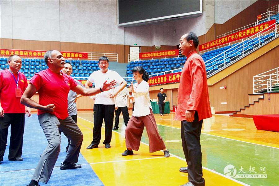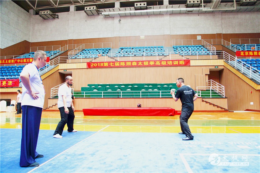 (太极网报道)8月22日,太极网采编团队走进陈家沟太极拳国际交流中心,探班第七届陈照森太极拳高级培训班。百余名太极拳爱好者在陈照森老师和众位教练的教学带领下,活动现场学习气氛浓厚,学员们学习热情高涨。 教练悉心指导学员 本次培训班有来自世界各地150余名太极拳爱好者,其中更不乏国外弟子学员。陈照森老师授课非常耐心,并反复沟通纠正,获得指导和体感的学员用会意的微笑感谢老师的教导。陈照森老师在采访中说希望通过手把手的教学培训班,更好地向国内外传播太极拳,用太极文化搭建起中外交流的友好桥梁。 陈照森老师指导外国学员 为了保证本次培训班顺利进行,陈照森老师优中选优,组织了强大的教练团队,他希望广大学员们能够在本次培训班中用心修习课程。真正做到学有所得,在陈家沟有所收获并留下美好回忆。 据了解,陈照森太极拳高级培训班已经持续七届,规模逐年壮大,获得了太极拳界的高度认可。 责编:张欢 |