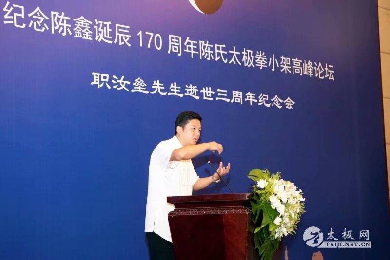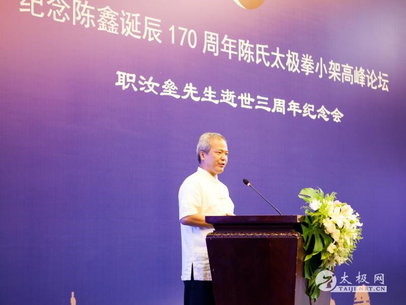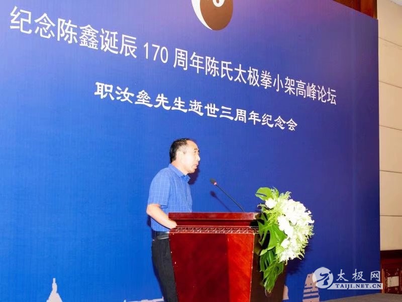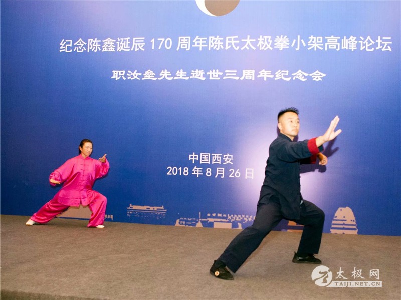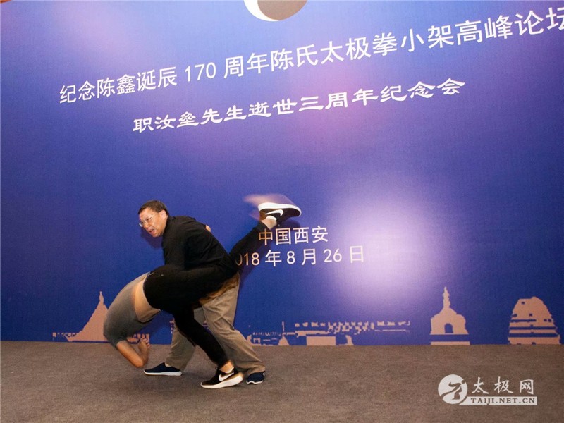 (太极网报道)8月26日,为纪念陈氏太极拳小架代表人物职汝垒先生逝世三周年,由西安陈金鳌太极拳学会主办的纪念陈鑫诞辰170周年陈氏太极拳小架高峰论坛在陕西省西安市曲江惠宾苑酒店隆重举行。陕西省武协、西安市武协的重要领导、西安部分武术组织的代表、西安太极拳各流派的代表、红拳名家、形意拳名家及西安陈金鳌太极拳学会的代表、职汝垒先生的弟子、再传弟子等共150人参加了活动。 西安陈金鳌太极拳学会会长刘永强主持本次活动。 活动首先通过视频的形式向西安武术界汇报了一周前在先生故里河南温县顺利举行的“职汝垒先生三周年祭奠暨立碑仪式的”概况。 论坛正式开始前,全体参会人员向职汝垒先生等为武术事业做出贡献的先辈们默哀一分钟。 刚刚率领中国国家武术队从雅加达亚运会赛场载誉归来的国际武联执委、中国武协常委、国家武术队领队、陕西省武协常务副主席、西安市武协主席田苏辉,在带领国家散打队赴临潼开展活动的紧张间隙,特意发电向西安市武协原顾问职汝垒先生逝世三周年表示深深的缅怀,向纪念陈鑫诞辰170周年陈氏太极拳小架高峰论坛的顺利举行表示祝贺,同时向参加活动的武术界老拳师和全体与会者致以良好的祝愿、祝福! 西安市武协常务副主席方秀敏先生在讲话中回忆了与职老师交往的美好日子,充分肯定了职先生的高尚武德和人品,谈了他对武术的理解、对陈氏太极拳小架的认识,希望大家继承先生遗志,将陈氏太极拳小架这一武林珍品发扬光大,为西安武术事业继续做贡献! 来自太极故里河南温县的原体育局局长原福全在讲话中对职汝垒先生的传承贡献、对西安陈金鳌太极拳学会的发展给予了充分肯定,对陈氏太极拳小架的中兴信心满满,对论坛的高品质、高规格举办表示衷心祝贺! 职汝垒先生的儿子职胜奇在致辞中对他的父亲的为人、传拳进行了深情的追忆,谈了父亲对太极拳的痴爱和不懈努力,表示将传承父亲的精神,做像父亲那样的人,谦虚温和,大度内敛,为太极拳事业而坚持、而努力,同时向全体来宾表示感谢! 陈家沟陈氏第十八世、《陈氏太极拳图说》的校注者之一、西安陈鑫太极拳法研究会的会长陈孝龙、职汝垒先生的儿子职胜奇、赵堡太极拳的代表人物吴忍堂、陈金鳌的弟子李树发、王成新、西安陈子明太极拳学会会长王胜利、职汝垒的弟子邓明科(教授)、王敬宗(博士)、赵刚(交大博士)、王兆宗(建筑师)、学会常务副会长赵雁军(陈堂、崔玉洁的弟子)等人分别从陈鑫太极拳法的理论特点、职汝垒先生对陈氏小架太极拳的继承与发展、太极拳的最高境界:活学活用、陈氏小架太极拳的擒拿与反擒拿的训练、陈氏小架太极拳的规矩、中国哲学与太极拳、古圣先贤与太极拳、太极拳的能量转换和结构转换原理、职汝垒恩师墓园设计理念、陈金鳌太极拳的发劲特点等方面阐述自己的理解,理论研究深入,文化特点浓郁,技术难点解析到位,让人耳目一新。 论坛间隙,陈氏小架传人王成新、赵学法、职胜奇、彭龙贵、职永成、雒春慧展示了不同风格的陈氏小架太极,陈发科太极拳研究会的会长刘宝欢、西安永年杨氏太极拳学会的姜凤翎老师分别展示了陈发科太极拳架和杨氏太极拳,尤其是西安秦腔剧院三意社的国家一级演员王战毅悲情演唱的的《赵氏孤儿》中的“挂画”片段和职汝垒的弟子王兆宗的太极拳携手同台展示,形式新颖,配合默契,缅怀气氛突增。 论坛最后进行了精彩的武术展示:由吴氏太极拳名家郑福记和弟子表演了太极推手;形意拳名家、尚济拳法研究会会长陈宝安在演练中将形意拳、八卦掌、太极拳完美结合;红拳名家、西安自强国术馆馆长李志强和国家级武术之乡泾阳的红拳名家景跟成,一缓一急、一柔一刚,分别将红拳的特点展示得淋漓尽致;孙氏太极拳名家丁爱刚、第十三届全运会上的24式太极拳金牌得主冯燕、陈氏56式银牌得主李彦斌分别与大家分享了自己的看家节目,最后西安陈金鳌太极拳学会以年轻的大学生为主的团队向来宾展示了集体陈氏小架太极拳。 西安市武协常务副主席方秀敏、吴氏太极拳名家郑福记分别向活动赠送了书法作品。陕西省武术管理中心办公室主任肖关纪、西安市武协副主席高建武、刘桂安、红拳名家梁军安、太极拳名家原美君、佛汉拳代表王海军及部分太极拳组织的负责人李刚强、兴隆、唐志典、李维民、艾克海、刘启明、王淮海等人莅临指导交流,会后全体参会人员合影留念。 |