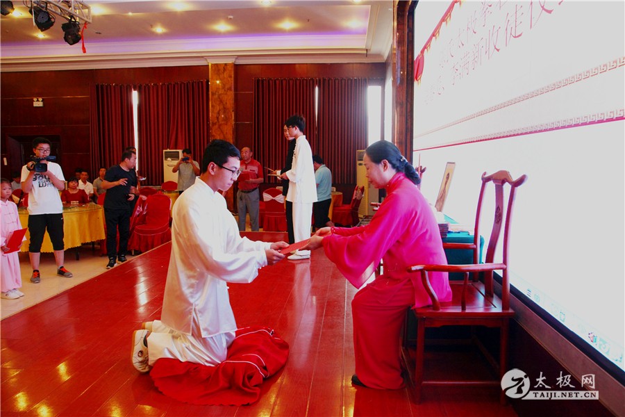 (太极网报道)8月27日,陈氏太极拳名家陈春爱、李满新收徒仪式于温县天天大酒店举行,10名太极拳爱好者通过传统拜师仪式拜陈春爱为师。 出席仪式的嘉宾有: 温县县委宣传部副部长、县太极拳武术文化管理中心主任宋明军 温县体育局副局长任海林 温县太极拳武术文化管理中心副主任范小涛 温县文联书记刘德军 温县法院副院长张国军 温县统计局副局长张清江 原温县人劳局局长赵国松 原温县水利局局长闫长印 太极网总监李超等到现场见证 宋明军致辞 张国军致辞 陈春爱向新入门弟子训话 武国财主持仪式 陈春爱陈氏太极拳协会副会长武国财主持仪式。收徒仪式上,陈春爱首先上香叩拜太极拳历代宗师,新入门弟子赵奕冰带领大家宣读拜师帖行拜师大礼,10名入门弟子虔诚地向师父跪拜,陈春爱向弟子颁发传承书。最后,太极名家陈春爱与10名弟子进行了证书签字仪式。在众嘉宾的见证下,10名弟子正式成为陈春爱老师的入室弟子。 县委宣传部副部长宋明军在讲话中对陈春爱老师和新弟子表示祝贺,祝贺陈春爱老师喜收新徒,新弟子得遇良师,太极拳的传承再添新力量。 温县人民法院副院长张国军致辞,祝贺新弟子拜师成功,希望大家有传承和传播太极拳的责任担当,做合格的太极拳传承人。 太极名家陈春爱对入门弟子讲话训诫,勉励新入门弟子要刻苦习拳,进一步弘扬推广太极拳文化,担当起传播太极拳的重担,传承中华传统武术精髓,将陈式太极拳发扬光大。 弟子表演太极拳 陈春爱 太极档案: 陈春爱,国家一级拳师,一级教练,河南省陈氏太极拳协会常务理事,温县体委陈氏太极拳专修院总教练,河南温县陈春爱陈氏太极拳协会会长。熟悉陈氏太极拳老架一路、二路,新架一路、二路及单刀、双刀、单剑、双剑、梨花枪夹白猿棍、春秋大刀等器械。曾17次代表省、市、县参加武术比赛,多次获得第一名。有“太极女皇”、“双刀女王”等美誉。曾在日本大阪、东京传拳、访问、表演,受到各国代表的好评,大阪市市长赠送了金钥匙,并接纳为大阪市“名誉市民”。在国内各大城市有多年拳术教练经验。 责编:张欢 |