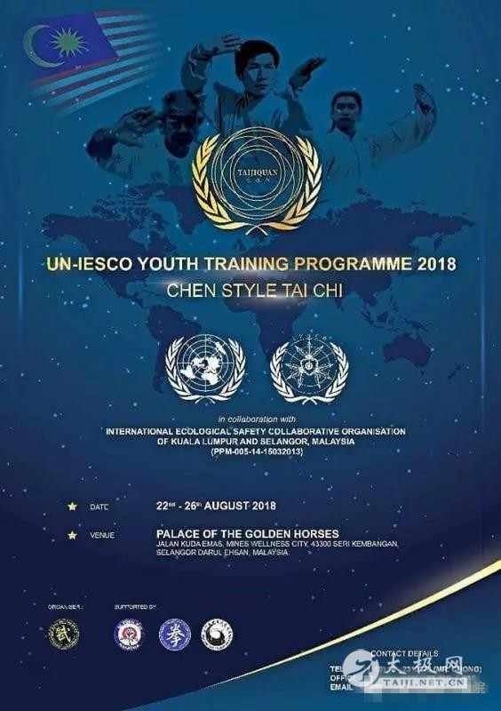 2018年8月25号,联合国生态环境保护组织举办的青年陈氏太极拳培训在马来西亚吉隆坡圆满结束,此次培训活动邀请的主讲师是来自中国陈家沟的陈炳老师。闭幕宴会上,联合国环境生态保护组织副主任Stuart Scott为嘉宾颁奖,陈炳被授予“联合国青年陈氏太极拳形象大使”。陈家沟国际太极院的陈晨、范昭朋、冉发林、陈飞、郑世诚、周浩田、史鹏辉做为此次培训的助教和嘉宾全程参与了活动。