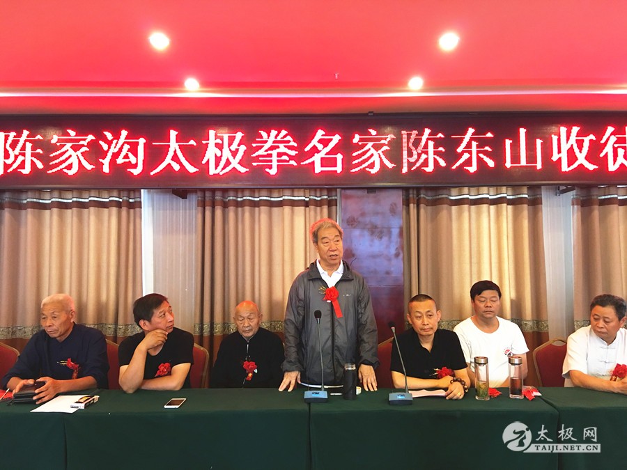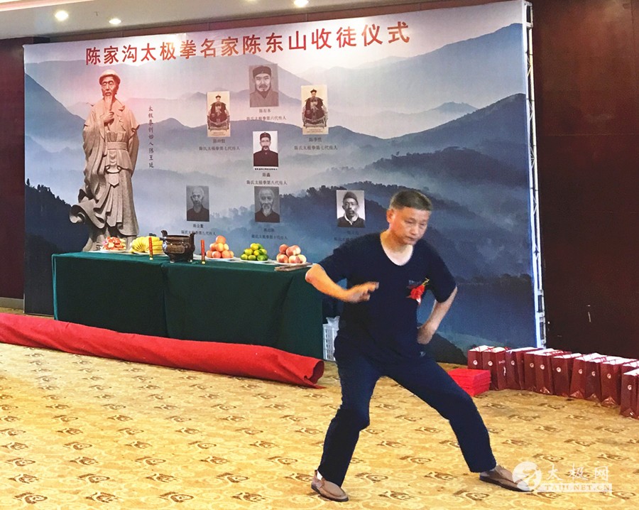 (太极网报道)根源圣地陈家沟,太极传承薪火续。9月2日,陈家沟陈氏太极拳传承人、太极拳名家陈东山收徒仪式于太极拳发源地温县陈家沟王廷大酒店举行,王冠月等25名来自秦皇岛和西安等地的太极拳爱好者经过师门审核考验,今日通过传统拜师仪式拜入陈东山老师门下,正式成为陈式太极拳 第十二代传承人,为太极拳的传承和传播增添新生力量。 陈东山及其夫人 出席收徒仪式的嘉宾有: 温县非物质文化遗产保护中心主任闫忙种 温县体育局原局长原福全 开封市武术协会张明、魏江辉 西安陈鑫太极拳法研究会会长陈孝龙 西安陈金鏊太极拳学会常务副会长张勇刚 西安子明太极拳研究会会长王胜利 陈家沟陈氏家族族长陈景安 陈家沟太极拳名家陈东海、陈立法、陈启亮、陈长义、陈春生、陈向武、陈瑞华、陈国胜等 参加本次仪式的嘉宾 太极网创始人、温县太极拳传承人联合会主席刘洪奇应邀出席活动,刘洪奇对陈东山老师高度评价,称陈东山老师是当今陈氏太极拳小架的杰出传承人,传拳授道、著书立说、影响巨大,并在仪式现场向陈东山老师颁发“太极网首席武术导师”聘书和“大拳师·百家讲堂”主讲人荣誉证书。 刘洪奇向陈东山颁发荣誉证书 陈家沟陈氏家族理事会陈石岩主持本次收徒仪式,陈家沟陈氏家族族长陈景安致欢迎辞。 仪式开始前,陈家沟陈三虎太极拳文武学校献上了精彩的太极拳械集体表演,陈氏太极拳小架名家陈启亮、陈春生、陈长义、陈瑞华、张明、张勇刚、王胜利以及弟子代表赵东仁等依次登台表演,现场掌声不断,观众大饱眼福。陈家沟太极拳传承人、汕头尚武太极拳馆全部总部馆长陈向武压轴表演引得满堂喝彩,将现场气氛推向高潮。 陈启亮表演 陈瑞华表演 陈春生表演 陈长义表演 陈立法表演 张明表演 张勇刚表演 陈向武表演 陈向武表演 陈三虎太极拳文武学校集体表演 拜师仪式正式开始,陈东山代表众弟子向太极拳始祖及历代宗师 敬香行礼,缅怀先祖创拳之辛劳,感念先师传拳之恩德。 新入门弟子宣读拜师贴并依次上前递交拜师贴,师父回帖 ,新入门弟子向师父行拜师大礼。 陈东山收徒仪式现场 陈东山向新入门弟子训话中表示,希望大家恪守门规祖训,认真习练太极拳,用心体悟太极文化,真正肩负起传承太极拳,弘扬太极文化的历史使命,为太极拳事业的 发展不懈努力。 陈东山向新入门弟子训话 新入门弟子赵东仁代表发言,他表示非常荣幸能够拜入陈东山老师门下,一定会珍惜这来之不易的师徒缘分, 尊敬师长,爱护同门,互助互爱。一定牢记 师父谆谆教诲,勤学苦练、锲而不舍、明理筑基、德艺双修,以毕生精力学练和传承陈式太极拳小架,为太极拳的发扬光大积极奉献。 新入门弟子赵东仁(左)代表发言 闫忙种在致辞中对陈东山老师表示祝贺,闫忙种说,陈东山老师德艺双馨,为温县太极拳的传承和传播颇有贡献,希望在师父的带领下新弟子们能继续为太极拳的发展贡献力量。 西安陈金鏊太极拳学会常务副会长张勇刚受西安市武术协会副主席刘永强委托向收徒仪式致祝贺词,代表西安市全体武术人向陈东山老师表示祝贺,对陈东山老师立足西安面向全国为陈式太极拳小架的传播和推广所付出的心血给与肯定和赞扬, 并希望新弟子们能够在太极之路上不忘初心、砥砺奋进奋进,为陈式太极拳的传承做出自己的努力。 闫忙种(左三)致辞 张勇刚致词 王胜利致辞 陈东山与刘洪奇共同为新弟子颁发太极拳传承人入谱证书,弟子们领到证书后纷纷表示更加有了太极拳的传承归属感和使命感,身上的责任和担当更重了。 陈东山与刘洪奇共同为新弟子颁发太极拳传承人入谱证书