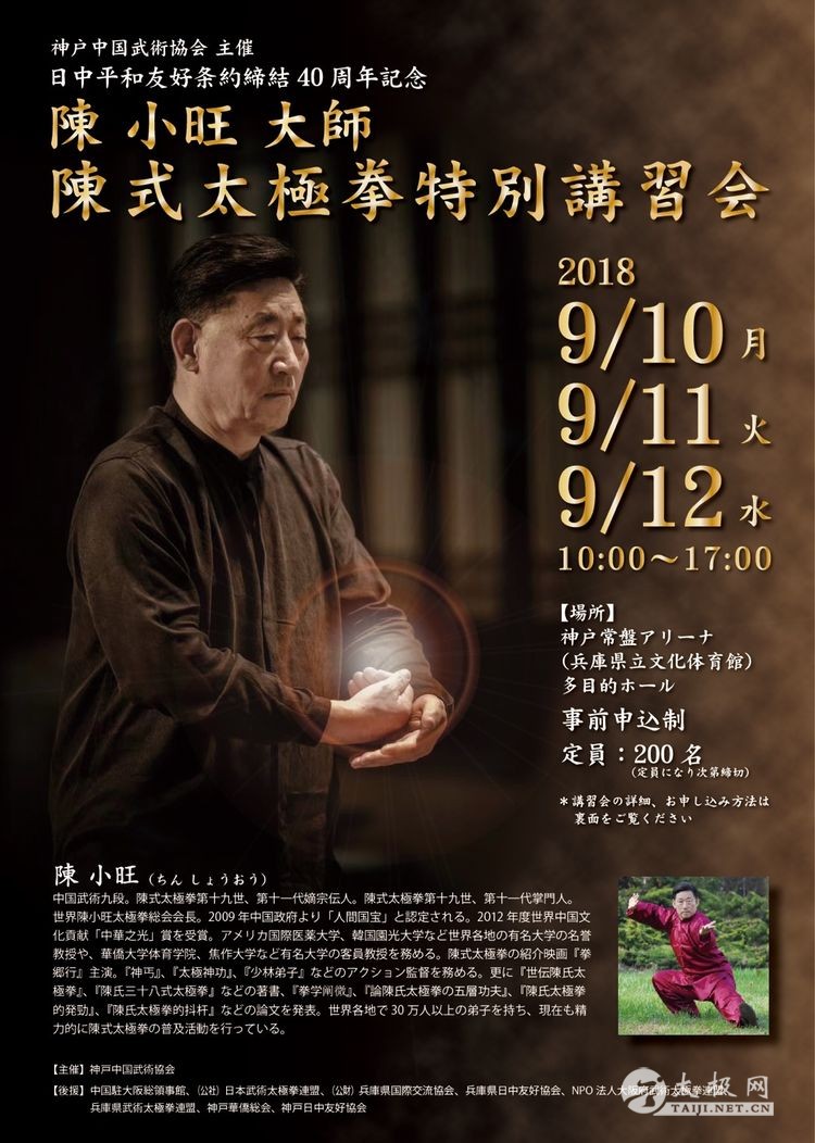 (太极网讯)《中日和平友好条约》缔结40周年,为弘扬中华优秀传统文化,推动太极文化的国际化发展,促进中日文化友好交流,2018年9月9日,陈家沟陈氏第十九世太极拳掌门人陈小旺先生首次带领世界陈小旺太极拳总会部分优秀分会会长至日本神户游学。 随行的陈小旺太极拳总会部分优秀分会会长 本次活动由世界陈小旺太极拳总会日本神户分会承办,神户分会于2014年3月在陈家沟成立,由陈小旺入室弟子王正创立。王正现为神户中国武术协会会长,2012年拜师于陈小旺先生,一直致力于在海外推广太极拳,培养了大批优秀运动员。 期间陈小旺先生将会在兵庫県立文化体育館主讲为期3天的“陈氏太极拳特别讲习会”,带领各分会长与日本太极拳爱好者一同切磋太极拳技艺。将全方位展示陈氏太极拳老架一路的功夫和理法,对日本太极拳爱好者来说,是一次十分难得的学习和观摩的机会。 另外,日本武术太极拳联盟重要领导将出席主办方特为陈小旺先生准备的欢迎晚宴,与陈小旺先生共同交流太极拳文化,促进两国友谊。 太极文化,不分国界。此次的日本游学对于太极拳在日本的推广和发展具有重要作用,陈小旺先生结束此行后,便要风雨兼程直接赶去三亚南山受邀参加第三届世界太极文化节,陈小旺先生多年来为传播太极文化一直在路上奔波,为发扬太极拳文化贡献自己的一份力量,这种敬业精神是每个太极拳习练者的榜样。 责编:太极网小杨 |