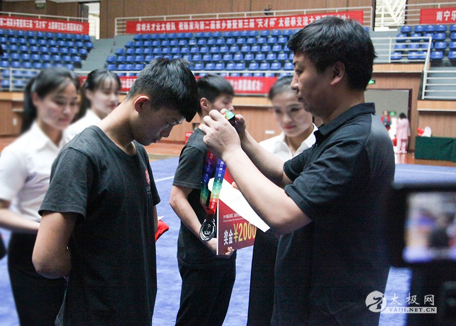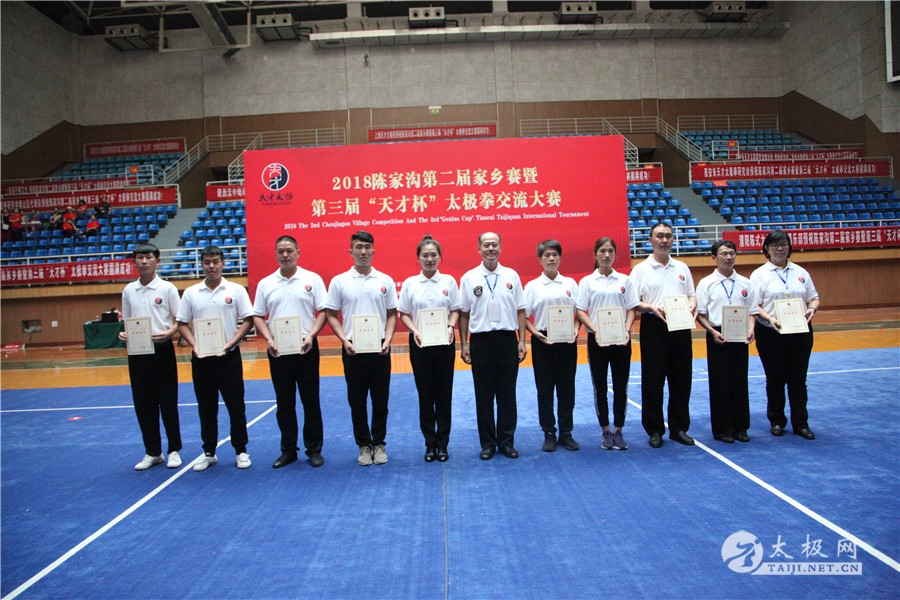 (太极网报道)9月10日,2018陈家沟第二届家乡赛暨第三届“天才杯”太极拳交流赛1200余名选手经过三天的激烈角逐,在所有裁判员、教练员、工作人员的共同努力下,顺利完成各项比赛任务,大赛颁奖典礼于陈家沟太极拳国际交流中心举行。 出席颁奖典礼的的领导和嘉宾有: 温县人民政府副县长 李美玲 国家级非物质文化遗产陈氏太极拳代表性传承人 朱天才 温县县委宣传部副部长、太极拳武术文化管理中心主任 宋明军 温县体育局副局长 任海林 温县太极拳武术文化管理中心副主任 范小涛 温县陈家沟景区管理局副局长 胡腾飞 石家庄方正集团董事长 张庆才 国家级非物质文化遗产陈氏太极拳代表性传承人朱天才致辞,他说第三届“天才杯”太极拳交流赛圆满举行,要对所有参加人员表示感谢,对取得优异成绩的各个参赛队表示祝贺,向在本次活动中付出辛勤劳动的全体裁判员、工作人员表示衷心的感谢。 颁奖典礼由温县体育局副局长任海林主持,比赛总裁判长李模歧宣布比赛成绩,温县县委宣传部副部长、太极拳武术文化管理中心主任宋明军宣布“武德风尚奖”裁判员、“优秀组织奖”代表队以及“武德风尚奖”代表队名单。 裁判员合影 体育局业余体校校长马骉为“男子推手56kg级”获奖运动员颁奖 陈家沟天才太极院院长朱向华为“男子推手60kg级”获奖运动员颁奖 陈家沟天才太极院上海分院院长朱向怡为“男子推手70kg级”获奖的运动员颁奖 陈家沟天才太极院新加坡分院院长朱向前为“男子推手80kg级”获奖运动员颁奖 陈家沟天才太极院深圳分院院长朱保林为“男子推手80kg以上级”获奖运动员颁奖 石家庄方正集团董事长张庆才为获得集体项目一等奖的运动队颁奖 副总裁判长吕礼全为“天才太极状元拳术争霸赛”获奖运动员颁奖 温县陈家沟景区管理局副局长胡腾飞为“天才太极状元器械争霸赛”获奖运动员颁奖 总裁判长李模歧为获得“武德风尚奖”裁判员颁奖 名家表演环节,朱天才大师及其优秀弟子传人、大赛裁判团成员以及众多陈家沟太极拳优秀传人分别登台表演太极拳。 吕礼全、吴伟光、周继承、于超亚、陈蓓、李文焕、傅毕翠、李彦斌、许晋阁、沈冀、鞠德泉、柯忠林、董志鸿、李国军、王清富、金钟、吴永峰、李利清、陈冠军、辛强、张艳、陈大虎、陈二虎、陈三虎、陈有刚、陈有华、张福旺、陈斌、朱保林、朱向前、朱向怡、朱向华等太极名家依次登台表演各展风采,朱天才大师压轴表演赢得满堂喝彩! 朱天才大师太极拳表演 朱保林太极拳表演 朱向前太极拳表演 朱向怡太极拳表演 朱向华太极拳表演 王清富太极拳表演 董志鸿太极拳表演 陈斌太极拳表演 张福旺太极拳表演 陈有华太极拳表演 陈有刚太极拳表演 陈大虎太极拳表演 陈二虎太极拳表演 陈三虎太极拳表演 张艳太极拳表演 辛强太极拳表演 陈冠军太极拳表演 李利清太极拳表演 名家表演 大赛部分成绩公布: 集体太极器械: 一等奖 焦作市朱天才太极拳研究会 二等奖 西安朱天才太极拳研究会 温县有刚太极武校 三等奖 靖安太极拳协会一队 温县田培亮武校 团体前八名 第一名 王战军太极学校 第二名 张保忠太极武院 第三名 焦作市朱天才太极拳研究会 第四名 西安朱天才太极拳研究会 第五名 陈三虎武术学校 第六名 陈家沟虎啸太极拳学校 第七名 马来西亚天才陈家沟太极拳馆 第八名 温县有刚太极武校 陈家沟天才太极院院长朱向华在接受采访时说一场的比赛时间很短,但它记载了一种精神,记载了一种传承,希望全体运动员以比赛为契机,把比赛激发出来朋友的合作理念、永不服输的拼搏精神,为更加美好的多彩赛事而奋力拼搏、再创佳绩! “天才杯”虽已落幕,但太极圣地赛事将继续进行,据悉,2018年陈家沟第二届家乡赛年度总决赛将于11月2号-5号开赛,具体赛事规程请大家关注太极网。 本站责编:张欢 |