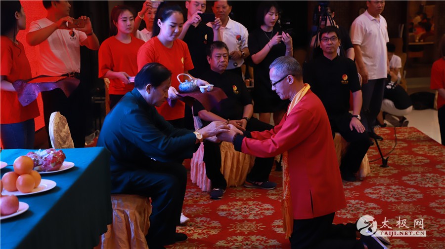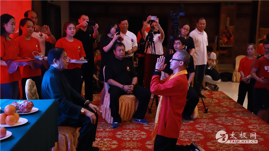 (太极网报道)9月11日,国家级非物质文化遗产陈氏太极拳代表性传承人朱天才在陈家沟太极拳祖祠举行拜祖仪式,来自全国各地的朱天才老师的弟子们及太极拳爱好者纷纷到场参加仪式,缅怀先祖,继往开来。 据了解,此次参加拜祖的弟子有很大一部分是参加陈家沟第三届“天才杯”太极拳交流赛,学员们在接受太极网采访时纷纷表示走进陈家沟对自己所学太极传承体系有了进一步认识,更感太极传承的责任和使命感,后续将更加用心习练太极、传播太极。 仪式由陈氏家族理事会陈石岩主持,祭祖仪式开始后,到场众人集体向太极拳始祖陈王廷及历代宗师行鞠躬礼,感念先辈,随后陈氏家族族长陈景安发表讲话,他向朱天才老师多年来为太极拳事业发展的辛苦付出表示感谢,并向从全国各地赶到温县,走进太极拳发源地陈家沟的朱老师弟子表示欢迎,并预祝本次祭祖仪式取得圆满成功。 弟子王清富代表讲话,他首先缅怀先祖创拳之辛劳,随后肯定了朱天才大师为太极拳做的贡献,表示今后一定会牢记先祖师训,为传承和发扬太极拳做出贡献。 仪式上朱天才老师宣读拜祖文,并上香、敬酒、行叩拜大礼,之后朱天才大师之子朱保林、朱向前、朱向怡、朱向华四人上前上香叩拜,最后新老弟子依次向太极拳始祖上香,追溯缅怀太极拳历代宗师。 祭祖结束后,朱天才大师率众弟子在太极拳博物馆门前内演练太极拳套路。百名拳友共打太极,场面壮观,祭祖仪式画上圆满句号。 朱天才大师多年勤修苦练太极技艺,多年来为太极拳的推广和传播所作出突出贡献,随其学拳者数以千计,声名远扬,9月10晚,朱天才大师在温县海旺酒店举行收徒仪式。二十余名优秀的太极拳爱好者拜入朱天才门下,成为太极拳传承人。 朱天才大师感言,拜师不仅要学习师傅的拳法,也要学习师傅的艺德。希望弟子们恪守门规祖训,真正肩负起传承太极拳,弘扬太极文化的历史使命,为太极拳事业的发展不懈努力。 本站责编:张欢 |