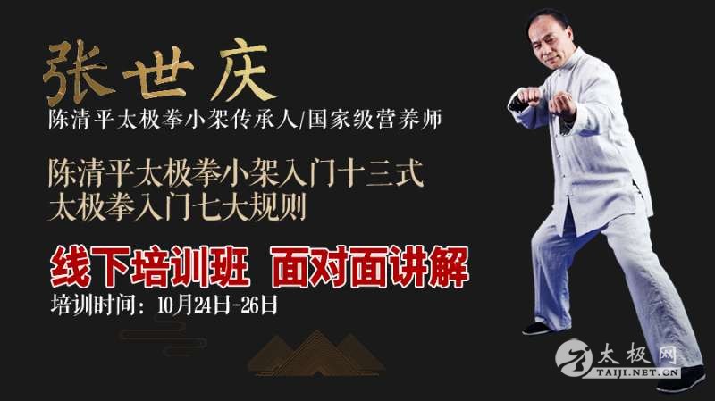 张世庆,自幼习武,陈清平太极拳传承人,国家级营养师,对中医、手诊、面诊皆有一定造诣。 作为《大拳师·百家讲堂》主讲人,张世庆老师在网络的授课上备受广大拳友欢迎,现应拳友要求,张世庆老师特开设线下培训班授课,以弥补在网上授课上的不足,此次主要教授陈清平太极拳小架入门十三式、太极拳入门七大规则两大课程。 此次培训为期三天,张世庆老师将现场演示,深入浅出地讲解太极拳入门十三式、太极拳入门七大规则,快速提升广大太极拳爱好者的太极拳水平。 一样的套路一样的拳,一样的理论一样的练,不一样的指导带你走进不同的太极世界。 张世庆拳照 一、学习内容:陈清平太极拳小架入门十三式 太极拳入门七大规则 二、教学形式:线下培训班,面对面讲解 三、开班时间:10月24日——26日 四、报名时间:即日起到10月20日截至 五、报道时间:10月23日下午,温县武术馆太极网报道 六、报名方法:请加张老师微信18039181737(手机同号) 七、学习费用:1600元(购买过直播课程的学员减200元,拜师学员免收培训费,交通食宿自理,集体组织。) 八、报名人数:为保证教学质量,本次培训限制报名20人,报满即止。