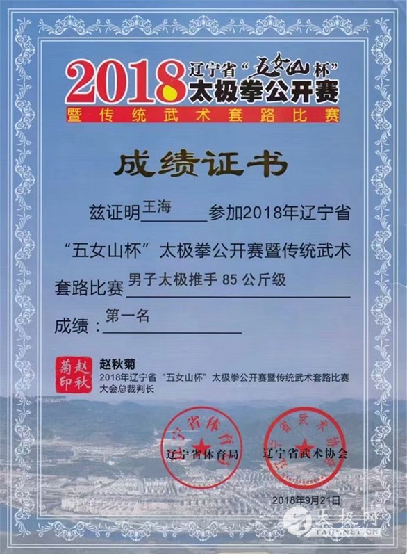 王海获奖照 (太极网报道)2018年9月21日,辽宁省“五女山杯”太极拳公开赛暨传统武术套路比赛开幕式在本溪市桓仁县民族广场举行。来自黑龙江省、吉林省、山西省及辽宁省等省份的22个地区182支队伍共2737人参加比赛。 大赛旨在弘扬中华传统养生文化,打造高层次传统文化交流平台,同时促进桓仁大健康产业与“北药”产业加快融合,推动桓仁旅游、健康、养生、休闲产业快速发展,打造“中国山水氧吧之都、国际生态健康之城”。 来自黑龙江绥化的王海(又名王三海),如今是广东惠州陈氏太极拳馆馆长,初次出道参加大赛即一鸣惊人。经过三天激烈的角逐,王海技压群雄,获得三枚个人金牌、一枚集体金牌,尤其在男子太极推手85公斤比赛中表现优异,力压对手夺冠,实力超群的表现引发赛场强烈关注。 赛场上的王海 王海获奖证书 合影留念 台上十分钟,台下十年功!近年来,王海频频征战各大武术赛场屡屡夺冠,离不开坚持不懈的付出和苦功。王海表示,这次的荣誉终于园了他的太极梦,感谢恩师张秀山多年辛苦的栽培,感谢家人和拳友的关系和帮助,自己后续仍将踏踏实实继续深耕学习,提升自身太极拳技艺,争取更加优异的成绩,为太极拳的传承和传播做出更多更好的贡献。 王海拳照 太极档案 王海,男,1967年5月12日生,绥化市人。陈氏太极拳洪传正宗传人,师承陈氏太极拳传人张秀山老师,王海尤其擅长太极推手。现任绥化市洪式太极拳研究会会长,2017年5月出任绥化市武术运动联合会副主席兼副总教练,广东省惠州市河南岸陈式太极拳馆馆长,武术五段。 王海先生自幼习武,多年来深得名师指教,学术造诣颇深。坚持多年如一日,讲学传艺,授武传道,可谓桃李满园。近些年来,王海先生游历于南北名山大川,拜师访友,传道授业,积极促进中华武术和太极文化、民族传统文化交流,为宣传绥化,扩大影响,打造“寒地黑土绥化——关东武术之乡"建设作出了积极的贡献。 2015年杭州太极拳锦标赛神功太极拳第一名,杭州太极拳锦标赛太极剑第一名; 2016年黑龙江传统武术锦标赛陈氏太极拳拳一等奖,黑龙江太极拳锦标赛武当剑一等奖; 2018年黑龙江省统武术锦标赛陈式太极拳冠军。 本站责编:张欢 |