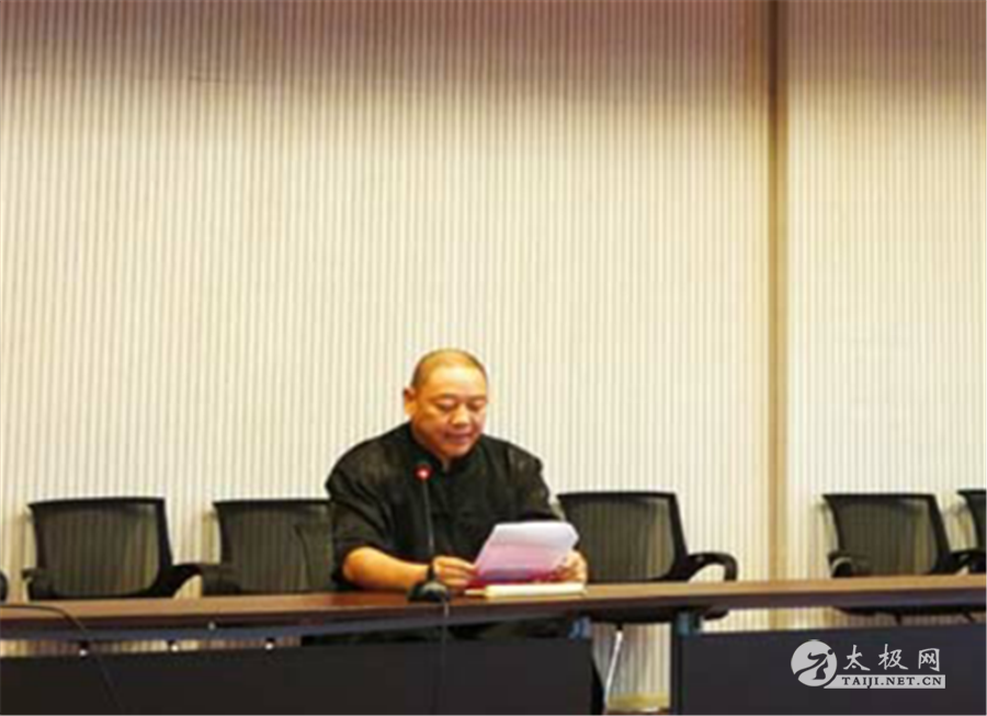 原副局长马俊平; 安徽省武术协会常务理事、中国武术八段陈复强; 安徽省武术协会常务理事、太极拳委员会副主任、中国武术七段田万明; 六安市武术协会会长柏贤圣; 池州市武术协会会长汪国柱; 宿州市武术运动协会会长李健; 宿州市太极拳协会会长汤斌; 中国武术七段徐少农、李勇。 8点30分,全体人员起立行注目礼,在庄严肃穆的国歌声中,大会正式拉开帷幕。 由安徽省体育局武术拳击运动中心社会部部长、省武术协会秘书长张祚川宣读成立安徽省太极拳推手委员会(以下简称:推手委员会)批文及其领导机构人员名单,并与新任主任徐少农共同为推手委员会揭牌。 徐少农主任宣读了推手委员会第一批顾问和委员名单,并请张祚川部长共同为顾问、委员们颁发聘书。 张祚川部长向推手委员会徐少农主任、李勇和谷丰平副主任颁发聘书。 张祚川部长与徐少农主任一起为推手委员会的办公室主任及4位部长颁发聘书。 池州市武术协会会长汪国柱、宣城市武术协会副会长许文波代表各地市武术协会致贺词,李健会长代表宿州市武术协会向大会承献了墨宝。 张祚川部长说,安徽省太极拳推手活动一直深受广大人民群众的喜爱, 但只是在民间自由发展,是自发的、自由的、松散的群众性活动,没有统一的规范标准,在全国太极拳推手比赛中常因没有专业队伍而缺席。我们曾组织过太极拳推手规则的学习培训,2016、2017年连续两年组织太极拳推手比赛,每次只有20几人参加,与全国太极拳推手形势发展要求极不相适应。专业的事交给专业的人去办,安徽省太极拳推手委员会的成立,必将引领全省太极拳推手运动进入一个新的阶段。 徐少农主任表示对省武术协会、各市武术协会、各武术团体、各位武术专家和老师深深的谢意!阐述了推手委员会成立的意义及未来的规划和愿景,赢得全场阵阵掌声。 据悉,本次培训报名人数高达326人,其踊跃程度远超预期,这充分说明召开安徽省太极拳推手委员会成立大会与举办太极拳推手项目教练员、裁判员培训班是众望所归的。 9点30分,推手委员会成立大会在热烈的掌声中圆满结束。 李勇副主任作动员讲话 9时40分,首期太极拳推手项目教练员、裁判员培训班正式开班。李勇副主任在开班典礼上作出动员讲话,说明了举办本次培训班的意义、任务和目标,并提出培训要求。 随后,裁判部部长卞传忠为参训学员宣讲2018年国家体育总局武术运动管理中心发行的《武术太极拳推手竞赛规则》,示范裁判判罚的口令与手势。场上场下充分互动,气氛热烈,