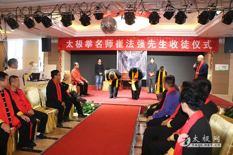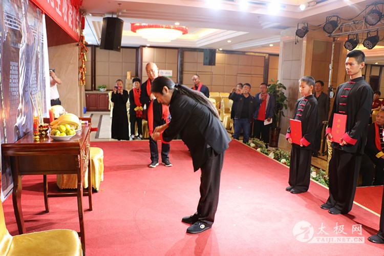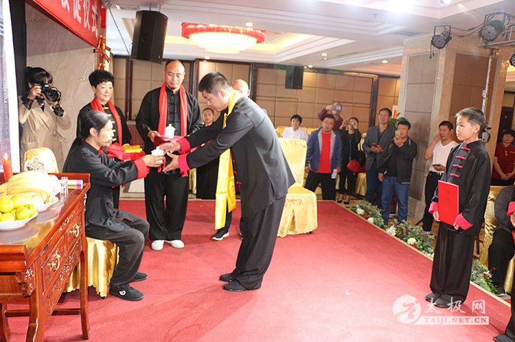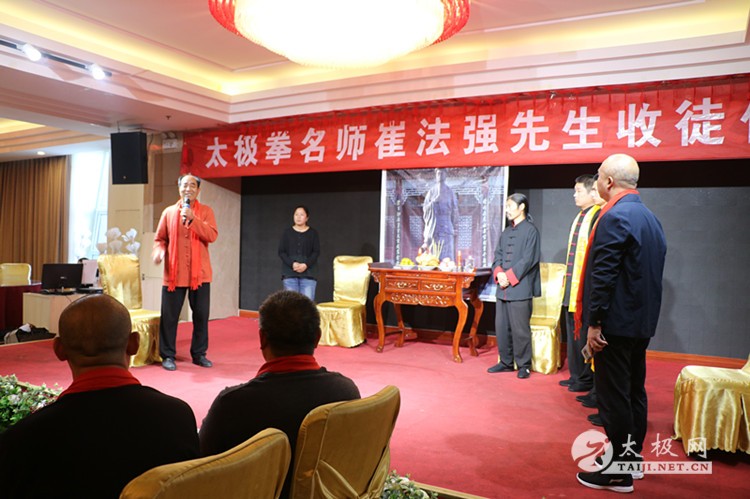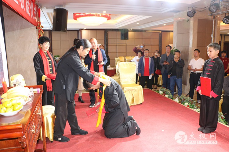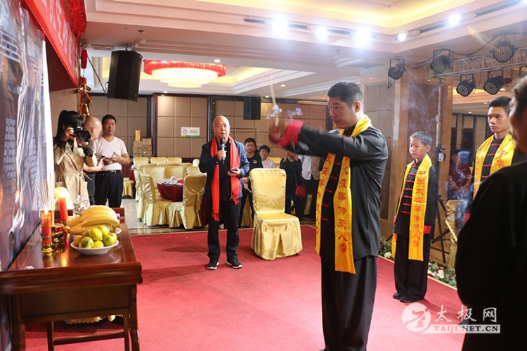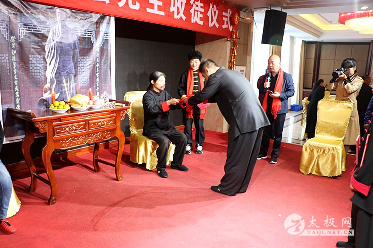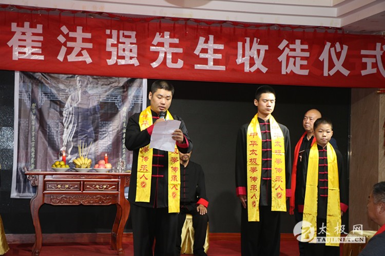 | (太极网报道)9月28日,陈式太极拳第十二代传承人、林州市太极搏击养生堂总教练崔法强收徒仪式在林州红旗渠假日酒店举行,靳国荣、吕飞杰、吴佳兴等三名太极拳爱好者拜在崔法强老师门下,正式成为陈式太极拳第十三代传人,承担起传承太极拳、弘扬太极文化的责任。 参加本次收徒仪式的嘉宾有: 陈家沟太极拳功夫学校校长、河南省非物质文化遗产项目太极拳(陈氏太极拳)代表性传承人陈照森 太极网创始人刘洪奇 陈家沟太极拳功夫学校副校长陈志伟 孟州太极拳协会会长常子轩 滑县太极拳协会副秘书长张怀仁 陕西省渭南市武术协会副主席景武军 长垣太极拳功夫学校校长王胜伟 长治陈照森太极拳研究会分会会长王红伟 长治陈照森太极拳研究会分会副会长桑慧芬 长垣陈照森太极拳研究会副会长张建红 林州九鼎商贸公司总经理呼鹏飞 林州豫林烟行总经理郝晓奎 焦作市陈照森太极拳研究会副会长刘红兵 长垣县太极拳推广中心副会长秦国学 太极网创始人刘洪奇主持本次仪式,仪式遵循传统,简洁庄重。首先,陈照森与崔法强师徒先后向太极拳始祖敬香,以告收徒传承再续薪火。随后弟子们依次上前向师父、师母行拜师礼,递交拜师贴并接受师父回帖,新弟子在师父带领下叩拜太极拳始祖。在众人的见证下,拜师礼仪圆满完成,三位新弟子正式成为陈式太极拳传承人。 陈照森向太极拳始祖敬香 崔法强向太极拳始祖敬香 弟子递交拜师贴 弟子叩拜师父 师父向弟子披挂绶带 弟子向师父敬茶 弟子向师母敬茶 新弟子向太极拳始祖敬香 师父带领新弟子叩拜太极拳始祖 仪式上,弟子代表靳国荣发言,他表示非常荣幸能够拜入太极拳名师崔法强老师门下,今后将会谨遵师父教诲,恪守门规祖训,认真习练太极拳,为早日成为优秀的太极拳传承人不断努力,为太极拳事业的发展贡献自己的力量。 崔法强老师向新入门弟子训话,希望他们能够恪守门规祖训,认真习练太极拳,用心体悟太极文化,真正肩负起传承太极拳,弘扬太极文化的历史使命,为太极拳事业的发展不懈努力,为太极拳的传播和推广努力奋斗。 弟子代表靳国荣发言 弟子答谢嘉宾 弟子(右至左)靳国荣、吕飞杰、吴佳兴 见证人常子轩致辞 师父向弟子训话 师爷陈照森致辞 合影留念 崔法强老师向参加今天活动的嘉宾表示感谢,崔法强说收徒不仅对弟子也对自己提出了新的要求,传承更有使命和责任, 今后将会继续致力于太极拳的推广和传播,培养出更多更优秀的太极拳人才,造福社会。 崔法强,陈式太极拳第十二代传承人,师承陈家沟太极拳名家陈照森,扎根河南林州开馆传拳,传播太极、传播健康,已成为当地的知名拳师,颇有影响。 本站编辑:太极网安安 |