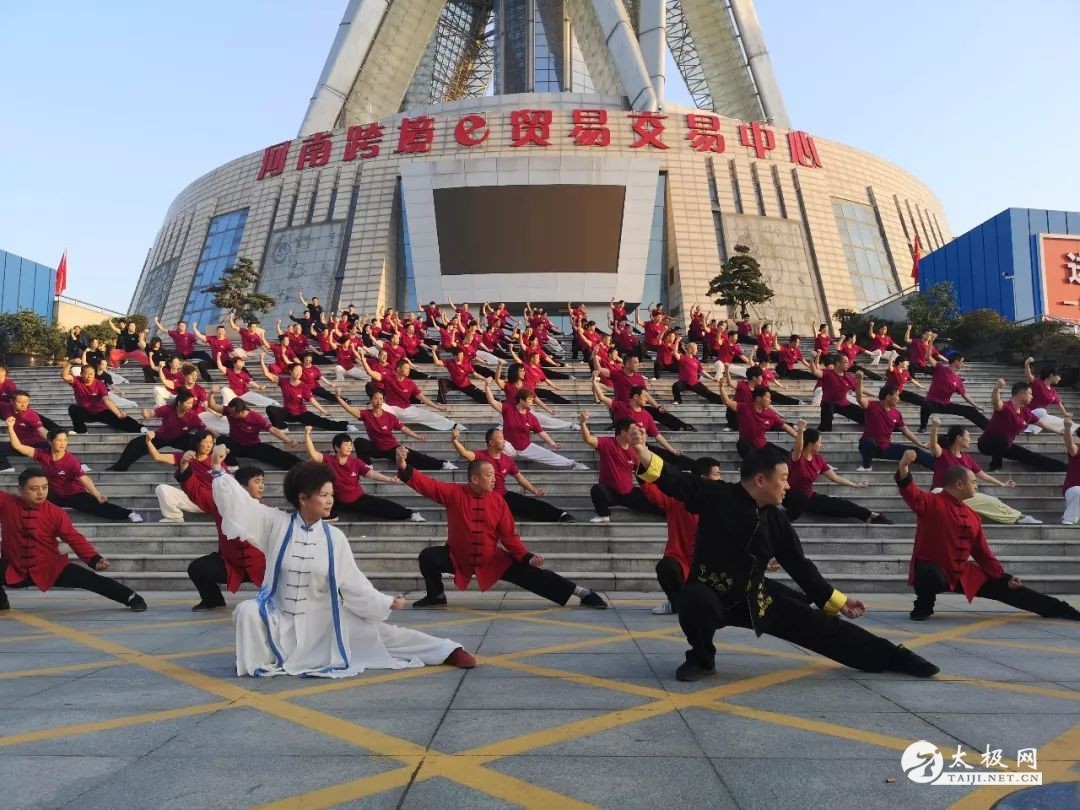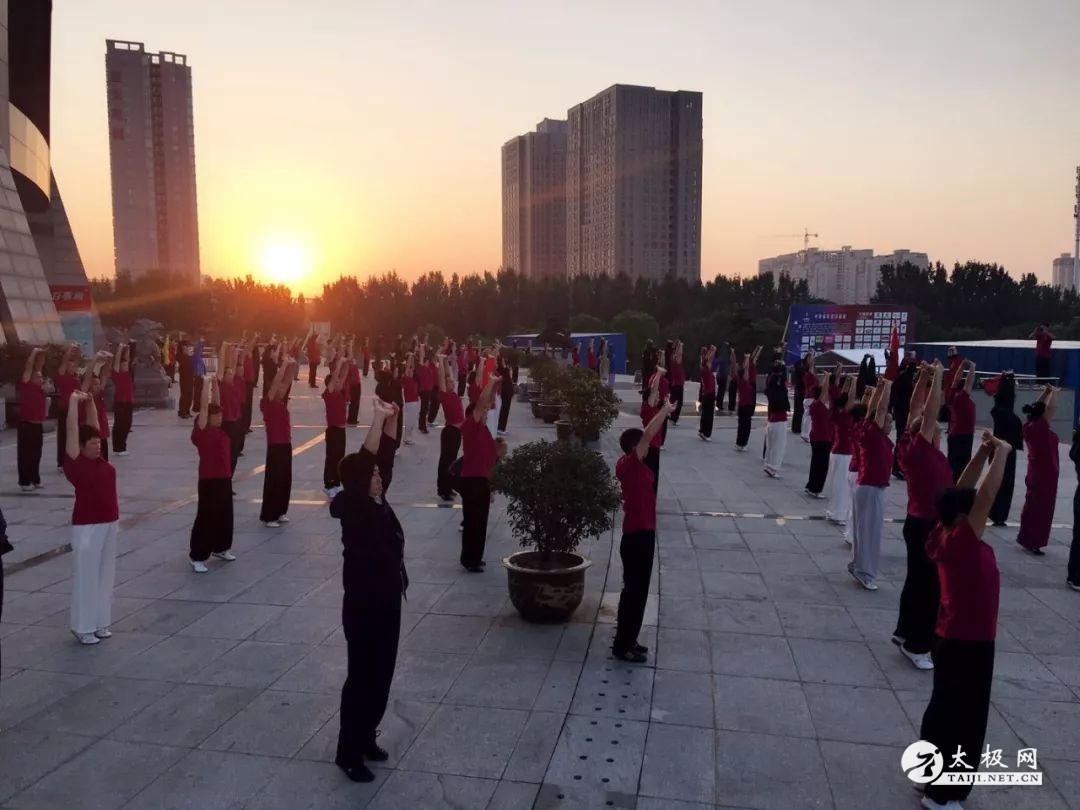 (太极网报道)10月3日,在张东武老师及教练的带领来下,来自全国上百名太极拳爱好者于早晨6点30齐聚在郑州市地标建筑“中原福塔”下集体演练太极拳,于晨光中打开了东武太极研修院培训班充满能量的又一天。 拳友的身姿与晨光交相辉映构成一幅靓丽美景: 东武太极培训班集体晨练太极,威武雄壮 气势如虹: