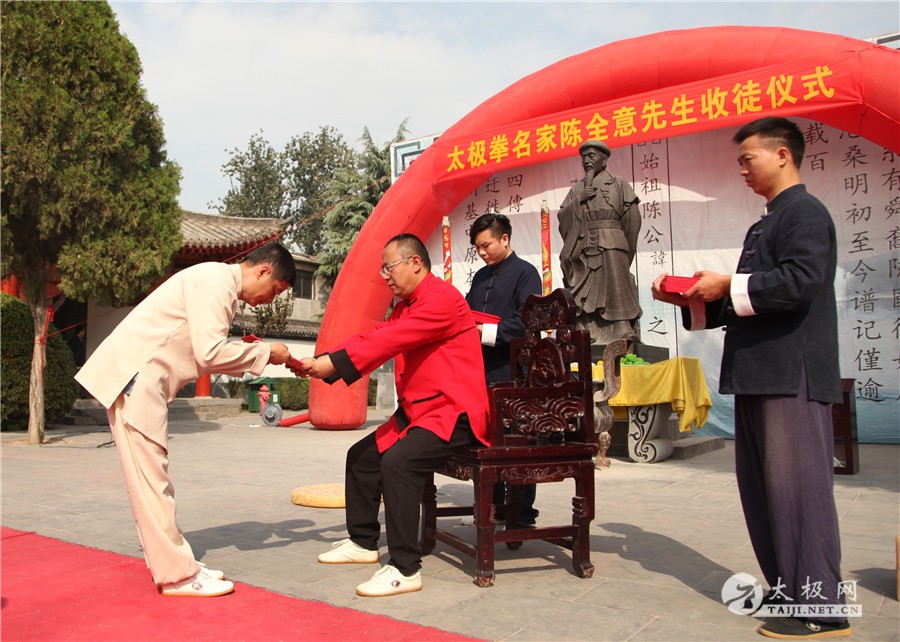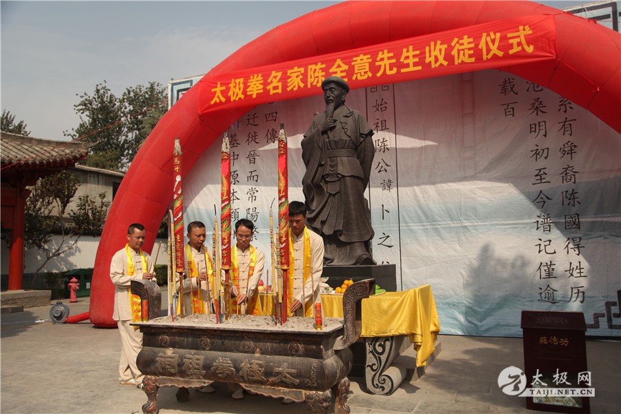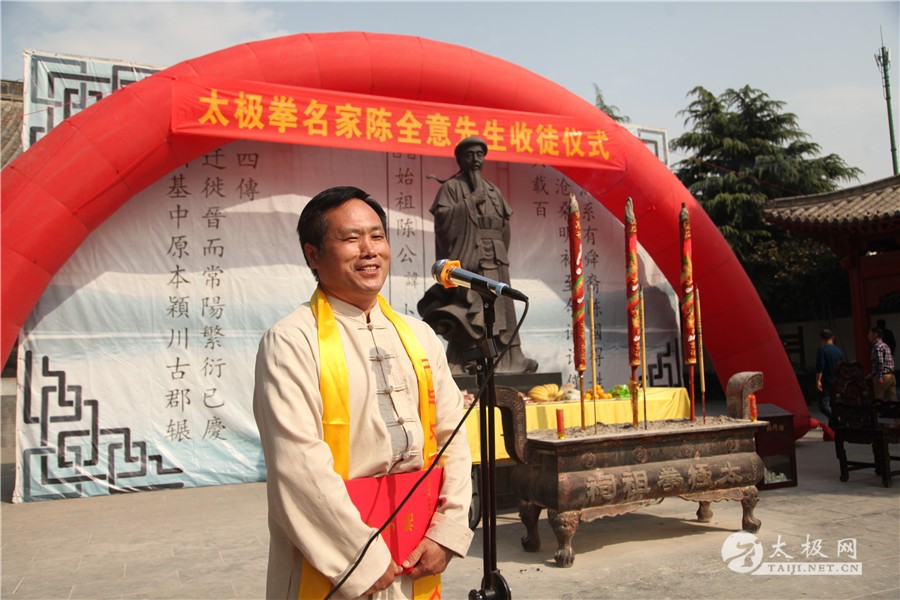 国庆假期的太极圣地陈家沟,秋高气爽、桂花飘香、热闹非凡。10月6日上午,太极拳名家陈全意祭祖收徒仪式在陈家沟太极拳祖祠举行。孟子云、杨伟平、林壮峰、魏海霞、倪树凯、蔡红华、黄少竞、林添羽、杨义、李东宇、陈朝蓬、王均海、郭少山、崔国辉、陈木峰 等15名太极拳爱好者通过传统拜师仪式拜入陈全意门下,成为陈氏太极拳传承人,肩负起传承推广太极拳的使命和责任。 温县陈家沟村委会主任陈景元,陈家沟陈氏家族族长陈景安、陈家沟陈氏家族理事会代表陈一华、陈沛林、陈立法,陈全意师兄弟徐宝利、徐昱先生、陈天视等出席仪式,仪式由陈家沟陈氏家族理事会陈石岩主持。 收徒仪式遵循传统、简洁庄重。 树发千枝皆归于一木,水流万派总出于一源,中华太极源于陈家沟,怀着感恩之心全体来宾向太极拳始祖陈王廷三鞠躬敬礼,陈氏家族族长陈景安向太极拳始祖陈王廷及历代先师祭祖。陈全意宣读祭祖文。 15名准弟子依次上前递交拜师帖,行礼叩拜,师父回弟子帖, 仪式有序进行。 师父陈全意携众弟子共同祭祖, 师父上香敬酒,并率众弟子向太极拳始祖及历代先师叩拜,以示太极薪火传承有序。 陈家沟陈氏家族族长陈景安先生为新弟子一一颁发太极拳传承人证书,陈家沟村委会主任陈景元向新弟子披挂太极拳传承人绶带。在众人的见证下,准弟子正式成为陈氏太极拳传承人。 陈全意向新弟子训诫:拜师对师徒提出了更高的要求,大家要 肩负起传承太极拳的责任,致力于传播和推广太极拳。 弟子代表孟子云表态发言,将谨遵师训、恪守门规,以陈氏太极拳传承人为荣和使命担当,团结同门,宣传陈家沟,推广太极拳,共享太极、共享健康,造福社会大众。 陈家沟陈氏家族理事会代表陈石岩对陈全意和全体弟子表示祝贺,祝师父喜收高徒,祝弟子得遇良师。代表陈家沟感谢广大拳友的支持,传承和推广太极拳落在了众人的身上,大家要携起手来共同发扬广大太极拳。 随后,众弟子依次有序上香祭拜。在全体来宾见证下,全体弟子共同展演太极拳。 陈全意,男,1971年出生于河南温县陈家沟,幼年随父在江苏徐州读书。1985年返乡学习陈式太极拳小架。在老师陈清环精心教授之下,渐悟太极精要。1998年开始在江苏徐州、辽宁葫芦岛、浙江台州等地授拳;2002在广东汕头设立拳馆传授陈式小架太极拳,弟子众多。2011年被中华太极拳传承谱系编纂委员会评选为2010中华太极拳优秀传承人. 现任陈家沟陈式太极拳小架研究会副会长,徐州市太极小架研究会总教练,汕头粤东小架研究会馆总教练。 责编:小七 |