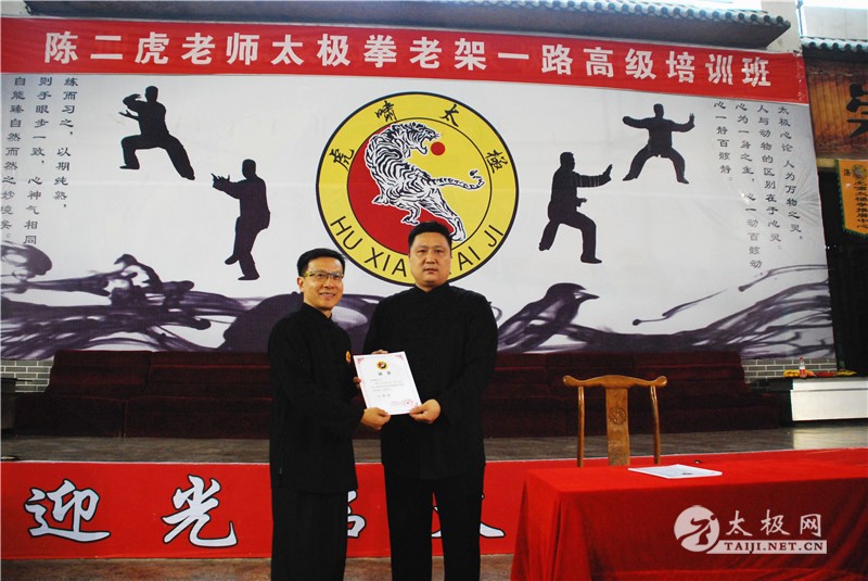 (太极网报道)10月6日下午, 历时5天的陈二虎老师太极拳老架一路高级培训班在温县太极武术馆圆满结束,本次培训班由陈家沟虎啸太极总会、陈家沟太极拳培训中心、温县武术馆馆长兼总教练陈二虎老师亲自授课,40余名来自全国各地的会员及太极拳爱好者们完成了全部培训课程,圆满结业。 陈二虎老师授课 短暂的五天时间,学员们不仅加深了对传统陈氏太极拳的认识,更大大提高了拳技,如愿拿到了培训班结业证书。大家纷纷表示:要把学到的内容认真领悟,刻苦研习,汲取陈氏太极拳精粹、提高太极拳技术水平,不负陈二虎老师的殷切期望。 学员认真练习 陈二虎老师向顺利结业的学员们表示祝贺,他表示每位学员在本次培训中学得很认真,动作练习很到位,拳技有极大进益。同时也强调练习太极拳需要长久坚持,希望大家往后能够多为太极拳的传播和推广贡献自己的力量。 陈二虎老师指导学员动作 陈二虎老师为学员颁发证书并合影 陈二虎,男,1975出生,河南温县陈家沟人,陈式太极拳十二代传人,师承王西安,陈家沟“八大天王”之一,国家一级武术裁判、一级拳师、河南省优秀教练员、优秀馆校长,国家太极拳推手新规则制定人之一,全国太极拳推手培训班特聘教练,温县第十三届人大代表。 责任编辑:太极网萌萌 |