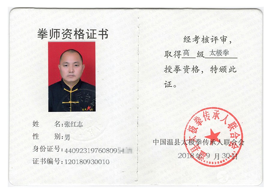 张红志,男,1976年8月9日出生,广东省茂名市电白区沙琅镇人。陈氏太极拳第十二代传人,当代太极名家张东武入室弟子,陈氏太极拳第十三代传承人。 1992年在嵩山少林寺中心武术学校习武,1994年参加登封市甲级武术馆校散打48公斤级亚军,1995年任嵩山少林寺中心武术学校教练,1996年在温县太极武术馆跟随张东武老师练习太极拳,1997年再次深造进嵩山少林寺塔沟武术学校继续习武。 1998年任嵩山少林寺中心武术学校沙琅分校校长兼总教练。 2004年参加广东省传统武木项目锦标赛获南拳第二名。 2010年至2011年任广东省佛山市南海区国防教育训练基地教官。 2012至2014年任广东省佛山市南海区青少年军校武术总教官。现任少林与太极国术馆馆长兼总教练。 |