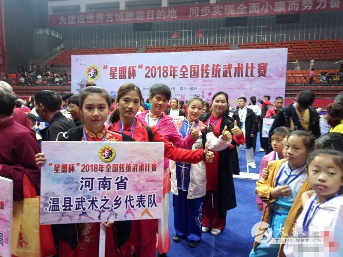 (太极网报道)2018年10月13日至15日,在“星盟杯”2018年全国武术传统武术比赛中,温县体育局、温县武术协会优选多名运动员,最后优中选优,共计选派十名运动健儿参加比赛。比赛中,温县运动健儿们奋力拼搏,力挫群雄,共斩获了13金7银6铜,集体项目更是以全场最高分9.11荣获第一名。 温县武术之乡代表队 此次大赛由国家体育总局武术运动管理中心、中国武术协会、四川省体育局主办,阆中市人民政府承办,来自全国21个省(市)、自治区110支代表队1300余名运动员参加了本次比赛,赛事在古城四川阆中盛大举行。 全国武术之乡武术比赛是国内武术界影响较大的传统武术赛事之一,此次我县代表队参加本届武术之乡的武术比赛,充分发挥太极拳发源地优势,在拳种流派众多、高手云集的全国武术大赛中大放异彩。学员积极备战参赛收获了好成绩,收获了学习交流的机会,提高了温县参赛队员的武术运动水平,增进了与全国各地武术界的交流与切磋,并且让大家进一步见识和了解了太极拳发源地的正宗正源的根文化,提高了温县武术之乡在全国的知名度,为以后太极拳的传承与发展起到了推动作用。 赛场上的温县健儿 责编:太极网萌萌 |