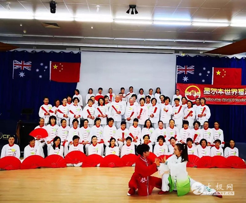 太极拳是一项传统的中国武术运动,同时也蕴含着中国哲学思想和东方处世之道,被国外友人称之为“优雅的艺术”,早已成为中华文化的一张闪亮“名片”。 为进一步促进中国太极文化在澳洲生根发芽,使更多澳洲友人加入其中,让太极之花在澳洲开得更加灿烂夺目。东武太极研修院常务院长,太极名家徐勤兰老师亲赴墨尔本开展的太极扇,太极拳,段位拳等丰富多彩的系列教学已经一周,在她的带动下,澳洲拳友的积极性很高,进步很快,在当地再次掀起太极热潮。