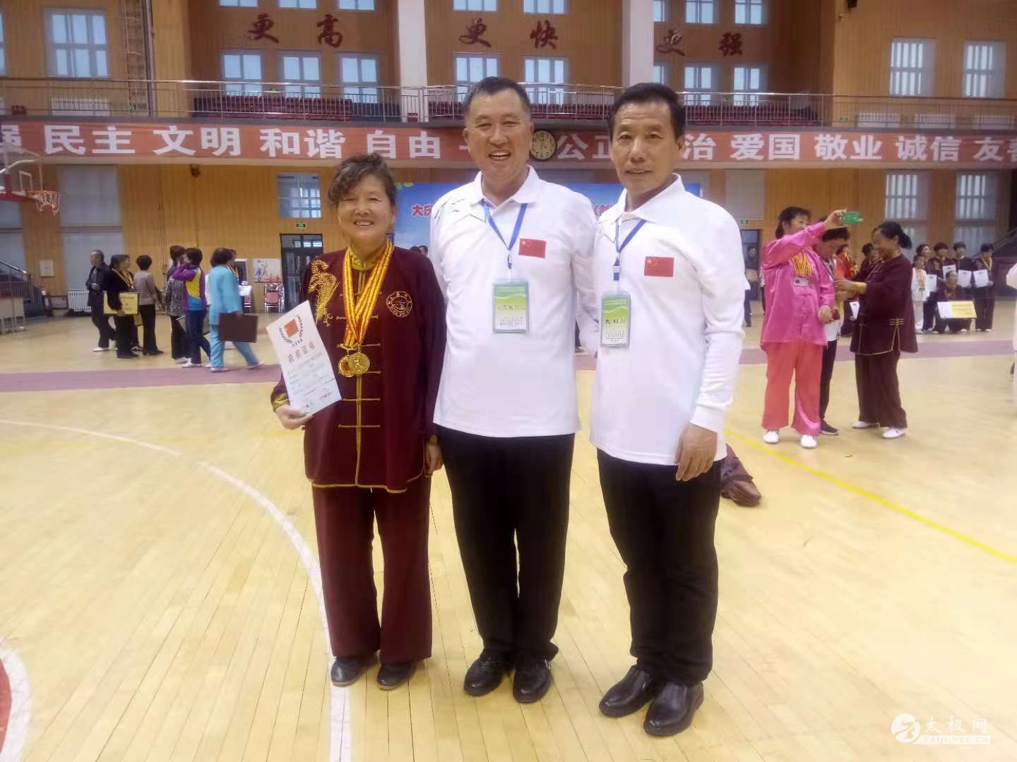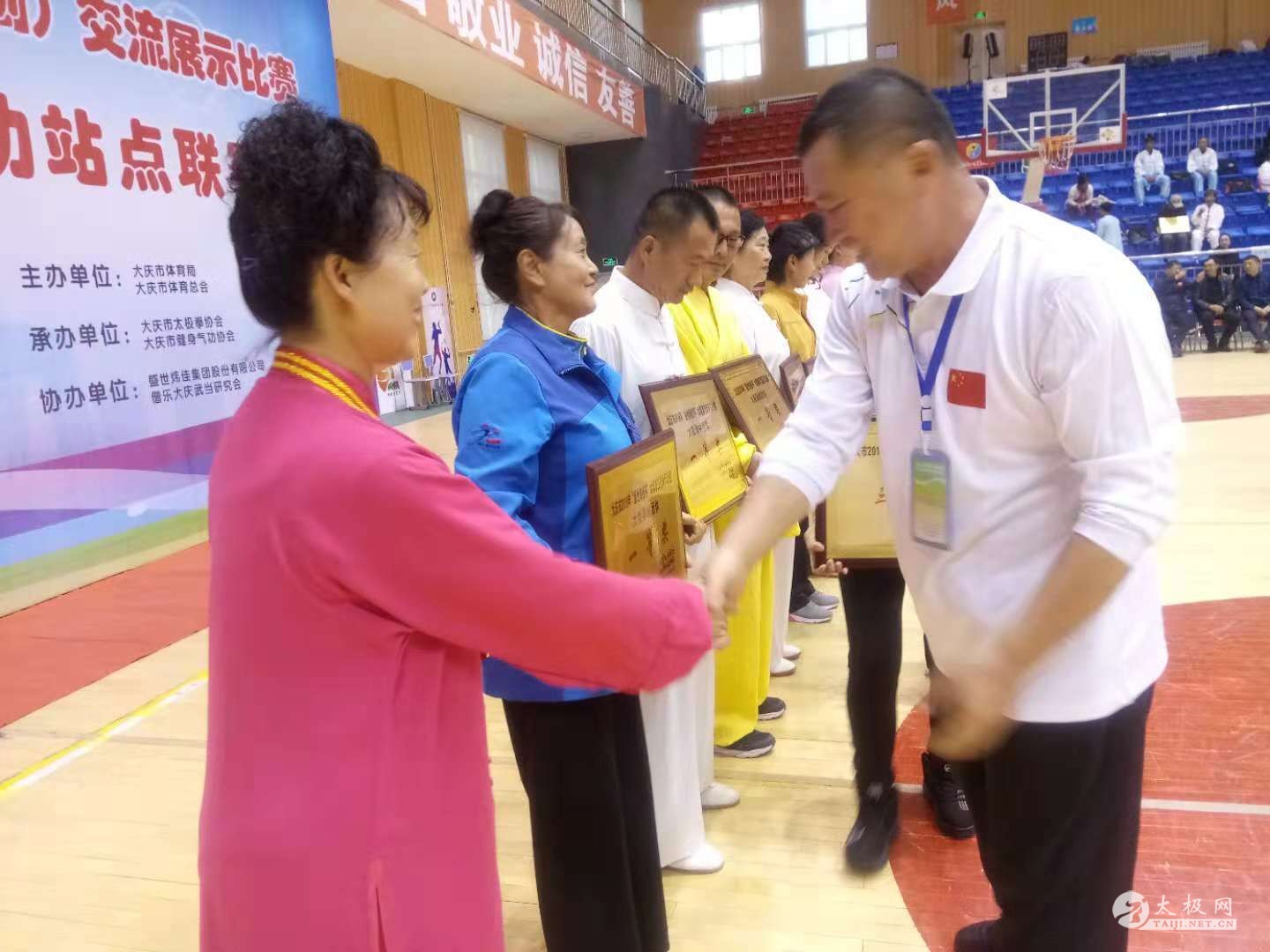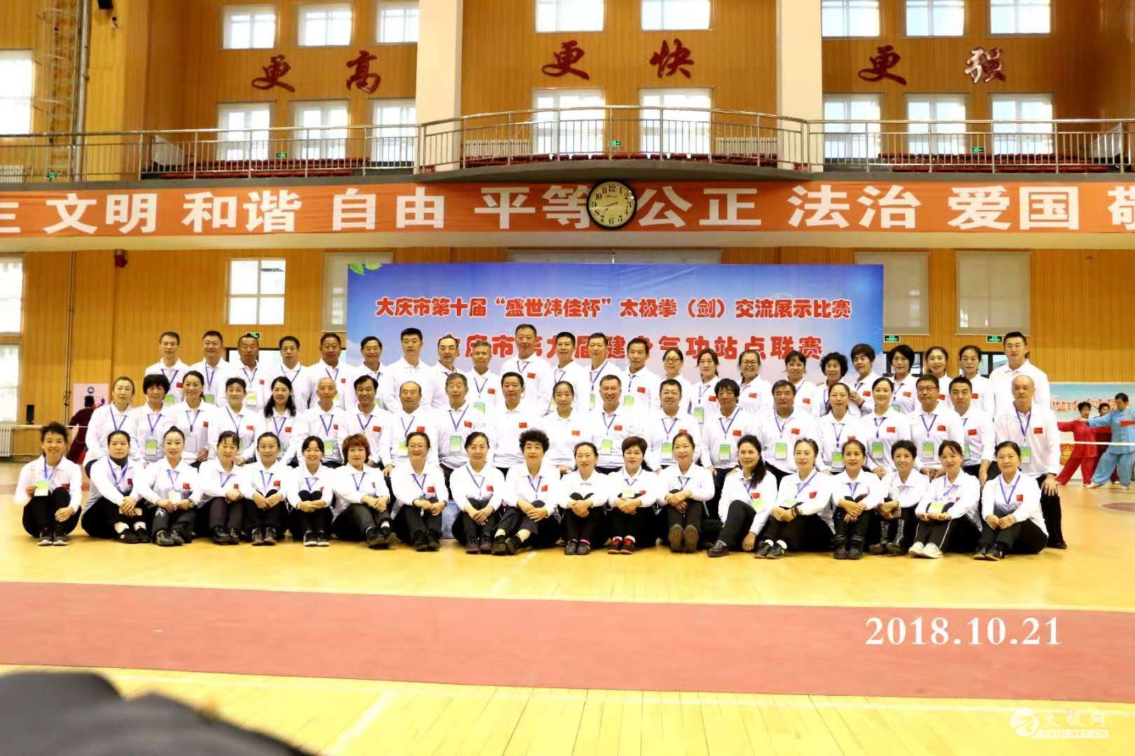 大庆市太极拳(剑)交流展示赛暨健身气功站点联赛完美收官 金风送爽,羽衣飞扬,放飞美好,留住希望。10月20日,大庆市第十届“盛世炜佳杯”太极拳(剑)交流展示赛暨大庆市第九届健身气功站点联赛,在大庆市实验中学二部体育馆隆重开幕。来自五区四县基层太极拳和健身气功辅导站一千余人来到比赛现场参赛和观赛。在为期两天的比赛中,参赛队员各个精神饱满,意气风发,一招一式尽展大庆太极人健康、快乐的良好精神风貌。 身上淌下多少汗水,自己增长多少技能。大赛是检验太极习练者最好的试金石。大庆弘道太极拳代表队在本项赛事上自信出手、收获满满,共获得奖牌近百枚。其中金牌37枚,银牌24枚,铜牌27枚;团体金牌1枚,银牌2枚,铜牌1枚。 本次大赛开幕式由大庆市太极拳协会、大庆市健身气功协会秘书长尹建忠主持,大庆市体育局局长安营,大庆市实验中学二部校长刘鹏斌,大庆市体育总会秘书长张颜辉,天津盛世炜佳集团乐游旅游副总经理张凤鸣、经理刘彧,大庆市太极拳协会、健身气功协会主席吕淑艳,大庆市太极拳协会、健身气功协会副主席徐彦峰以及各区县协会主席参加开幕式。 市太极拳协会主席吕淑艳代表本次赛事组委会致辞,天津盛世炜佳集团乐游旅游副总张凤鸣代表集团公司向大会表示祝贺,王瑞云代表运动员、齐立忠代表裁判员宣誓,最后,大庆市体育局安营局长宣布本次赛会开幕。 开幕式上,钻井一公司老年大学太极拳辅导站站长刘长友带领20名拳友表演了特警擒打武术套路。 吕淑艳说,“大庆太极精神贵在‘和谐’。大庆有李廷海、徐彦峰、杨海波等一大批太极拳优秀骨干,虽然他们分属吴氏、陈氏、杨氏等几大太极拳派别,也持有不同的见解,但他们没有相互排斥,而是秉承‘弘扬太极文化,共筑和谐向上’的大庆太极精神,在太极拳义务传授和太极文化传承的道路上,俯身耕耘,默默地坚守着。以后的日子,太极人将更紧密团结,携手前进,共同开创新的辉煌!”。 近几年来,大庆市五区四县全民健身活动扎实推进,开展得越来越好,共建立基层太极拳辅导站105个,健身气功站点102个。 大庆市健身气功代表队连续五年获得黑龙江省站点联赛第一名,并代表黑龙江省参加了五次全国健身气功站点联赛总决赛。 |