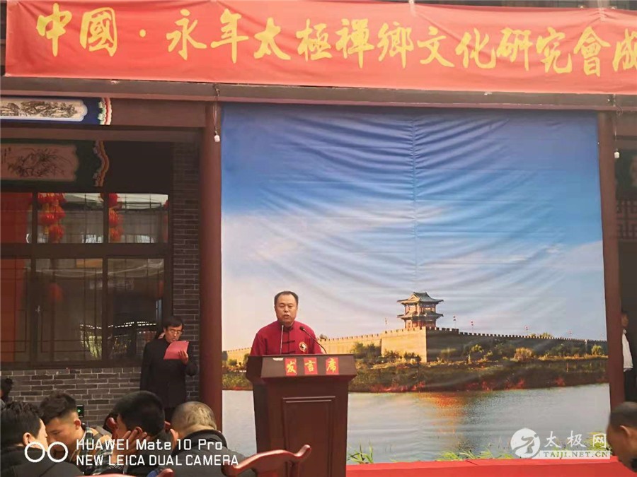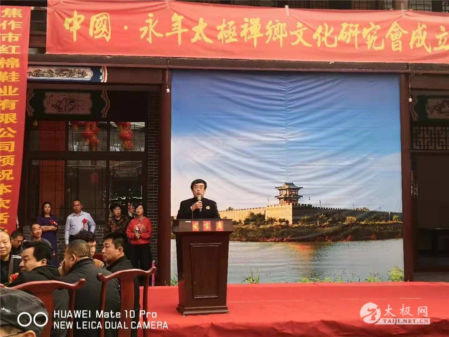 (太极网报道)2018年10月26日,中国永年太极禅乡文化研究会在被称为古城、水城、太极城的广府镇举行成立仪式。邯郸市文化园区管理委员会、邯郸市武协及广府镇太极拳协会的领导及来自河南、河北、陕西、四川、上海、安徽等十多个省市太极拳组织和武术界的代表共260余人参加了庆典活动。 杨志英主持仪式 广府太极拳协会副会长杨志英主持仪式,广府太极拳协会常务副会长高立新致欢迎辞。邯郸市文化园区管委会副主任郭立山、邯郸市武协主席孙华冰、原温县太极拳开发委员会主任、体育局长原福全、红棉鞋武术鞋厂董事长王旭等领导和嘉宾,分别在会上致辞、讲话。大家带着对中国永年太极禅乡文化研究会的祝福与期盼,共同见证这一喜庆又重大的时刻。 高立新致欢迎辞 郭立山讲话 中国永年禅乡太极文化研究会,是永年广府杨式太极拳传人李胜兴为主成立的组织。他将杨露禅、武禹襄两位太极拳宗师名字中各取一字的谐音,嵌入协议名称,别有一番文化寓意。李胜兴是广府镇杨式太极拳的传人,师从广府杨式太极拳名师韩兴民先生。多年来他积极从事和支持当地太极拳文化的传播事业,为广府太极文化事业的发展,作出了较大贡献。会上,邯郸市文化园区管理委员会领导、广府镇镇太极拳协会会长刘炳民和邯郸市武协的领导分别为研究会揭牌并向李胜兴颁发了太极名师等相关匾额、证书。各位领导及嘉宾在讲话中,充分肯定了在李胜兴等一批太极拳传人的努力下,广府太极拳事业的发展成就,希望大家携手团结,为推动当地旅游及各项事业的发展做出更大贡献。 为李胜兴颁发奖匾 李胜兴致答谢辞 成立仪式后,来自各地的太极拳和武术名家分别为大家做了展示表演。 责编:太极网萌萌 |