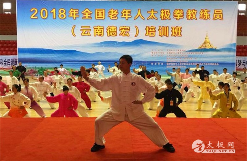 10月28日晚,为期4天的2018年全国老年人太极拳教练员(云南德宏)培训班在芒市圆满结业。陈氏太极拳传承人杨建平担任太极拳授课老师。100余名来自全国8个省、自治区的太极拳爱好者严格按要求和培训日程安排,以饱满的热情、积极的态度,圆满完成学习任务获得结业证书。本次培训班积极贯彻落实“全民健身和健康中国”国家战略,进一步提高老年人体协系统太极拳教练员的教学、管理和组织水平起到了积极作用。 参加本次培训开班仪式的领导有:中国老年体协太极拳专项委员会执行主任、秘书长周备丰,中国老年体协太极拳专项委员会活动部副主任常全旺,云南省老年体协副主席梁钒、吴改香,德宏州文体广电(新闻出版)局、德宏州老年体协相关领导等。 出席嘉宾(部分) 本次培训班受领导重视,中国老年体协太极拳专项委员会执行主任、秘书长周备峰对培训班给予高度评价。他表示本次培训组织管理严格,培训内容准备充分,学习培训效果明显,办出了特色和水平,对培训班给予高度认可。 培训期间,中国老年体协太极拳专家委员会专家讲师团不辞辛苦,深入到芒市勐焕街道建国社区、芒市镇松树寨芒晃傣族村、瑞丽市等基层文体活动中心开展基层太极拳指导活动,受到当地健身群众的热烈欢迎。 杨建平老师讲授26式陈氏太极拳简化套路 培训结束后,学员们一致表示,通过这次培训让他们受益匪浅,通过与太极大师名家们的零距离接触,和爱好者们切磋拳艺的机会,对太极拳有了更加深入的认识。参加培训的学员们都感叹,四天的时间太短了。 杨建平老师希望学员们通过本次培训班的学习,有效的提升自身太极拳水平,加深对太极拳内涵的理解,不仅要学好太极拳,更要为太极拳的传播和推广做出自己的贡献,让更多的人加入习练太极拳的队伍中,为太极拳的发扬光大不懈努力! 本站责编:张欢 |