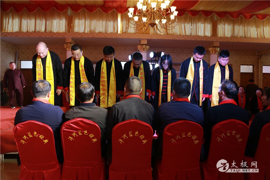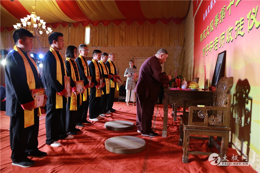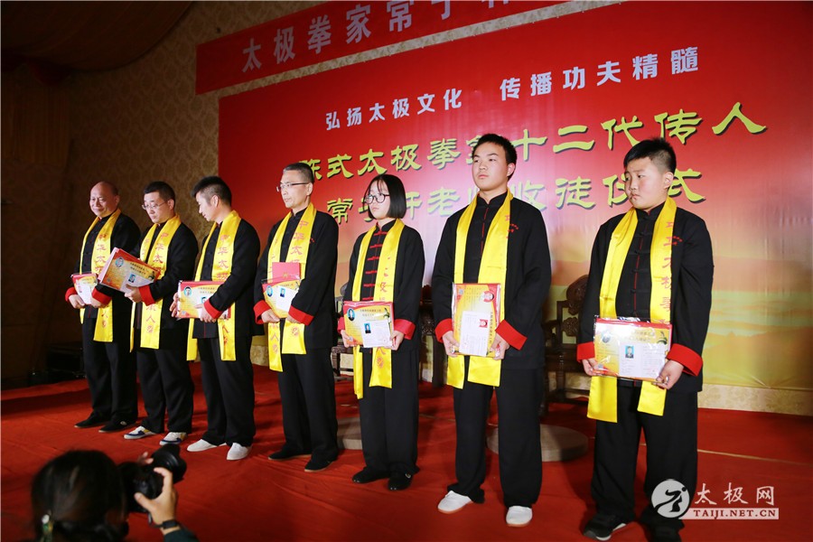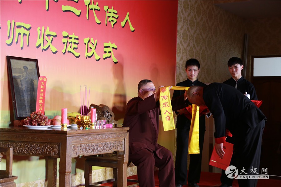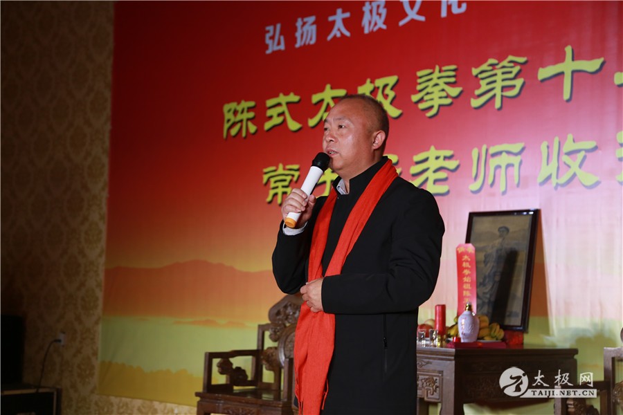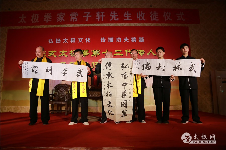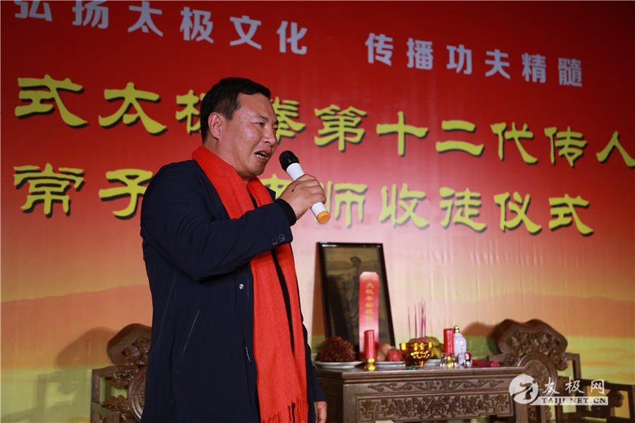 (太极网报道)2018年10月29日,陈式太极拳第十二代传人、太极拳名家常子轩收徒仪式在孟州市大宅院举行。胡蔚文、叶国强、周宏伟、刘宏伟、吴子贤、李帅坤、崔浩南等七名太极拳爱好者经过重重考验拜在常子轩老师门下,正式成为陈式太极拳第十三代传人,承担起传承太极拳、弘扬太极文化的责任。 参加本次收徒仪式的嘉宾有: 温县体育局副局长任海林 太极网创始人刘洪奇 陈家沟太极拳功夫学校校长、河南省非物质文化遗产项目太极拳(陈氏太极拳)代表性传承人陈照森 陈照森太极拳研究会会长王运宜 陈家沟太极拳推广中心执行主任陈皂罗 著名太极文化研究学者赵地生 陈大虎太极拳馆馆长、陈家沟太极拳“八大天王”之一 陈大虎 陈家沟太极拳武校校长、陈家沟太极拳“八大天王”之一陈冲 陈清平太极拳研究会会长张世庆 林州市太极武院院长崔法强 洛阳太极养生会馆馆长陈玲 美国海湾公司洛阳分公司总经理曲志国 博爱腾挪太极拳研究会副秘书长周春旺 原孟州市摄影家协会副主席梁嵩山 孟州市老年摄影家协会会长卢慎祥 孟州市太极拳培训中心主任兼总教练贾会生 孟州市街心花园幸福团队创办人潘趁意 特邀嘉宾:周勇、乔小冬、李冰川、柴永红、程建新、魏志新等 师爷陈照森敬香 师父常子轩敬香 宣读拜师帖 递交拜师帖 披挂绶带 向师父敬茶 颁发传承证 师父带领弟子敬香 太极网执行总编刘明菁主持收徒仪式,整个仪式遵循传统,简洁庄重。陈照森、常子轩首先向太极拳始祖敬香,以告收徒传承再续薪火。随后弟子们依次上前向师父行拜师礼,递交拜师贴并接受师父回帖,新弟子在师父带领下叩拜太极拳始祖。在众人的见证下,拜师礼仪圆满完成,七位新弟子正式成为陈式太极拳传承人。 任海林讲话 温县体育局副局长任海林在讲话中表示:希望在今后习拳传拳的过程中,众弟子要多沟通,多交流,希望大家携起手来共同为太极拳的弘扬传播积极贡献,将陈式太极拳推向全国、推向世界。 叶国强发言 叶国强作为新弟子代表发言,他表示今日能够觅得良师,拜入老师的门下,感到无比的荣幸。以后必当努力修行,不负师父厚望,尽心竭力传承太极拳,将太极拳发扬光大。 刘洪奇致辞 见证人刘洪奇对常子轩老师喜收新徒以及新弟子得遇良师表示祝贺,并叮嘱新入门弟子要谨遵师父教诲,团结同道,学有所长,通过传统文化礼仪来确立师徒传承关系,对每一位传承人来说既是荣誉更是责任,祝愿大家在太极大道上走的更远。 常子轩师父陈照森向弟子们训话 师爷陈照森训话:希望他们能够恪守门规祖训,认真习练太极拳,用心体悟太极文化,真正肩负起传承太极拳,弘扬太极文化的历史使命,为太极拳事业的发展不懈努力,为太极拳的传播和推广努力奋斗。 常子轩向弟子训话 师父常子轩训话,他说拜师只是成为太极拳传承人的开始,要肩负起传承和传播太极拳的责任与担当,需德艺兼修、尊师重道。希望弟子们练好拳、做好人,为太极文化传播和发展做出自己应有的贡献,传播健康造福社会。 常子轩老师感谢参加今天收徒仪式的嘉宾。同时他表示太极拳之所以如此博大精深,是一代一代传承和积淀的结果,自己会把弘扬太极文化作为毕生追求的事业,不断奋进。 席学义老师和韩敏老师因为远在深圳参加活动,对不能来到此次收徒仪式的现场深感遗憾,特意提前送来了他们为常子轩老师书写的墨宝,以此祝贺常子轩老师的收徒仪式圆满成功。 常子轩,男,1968年出生,河南孟州人,陈式太极拳第十二代传人、太极拳名家,现任焦作市孟州太极拳协会会长、子轩功夫馆馆长,太极网首席武术导师、《大拳师·百家讲堂》主讲人,陈家沟陈照森太极拳法研究会副会长、陈家沟太极拳推广中心技术总监、陈家沟太极拳研究院技术顾问,师承陈照森。 责编:太极网萌萌 |