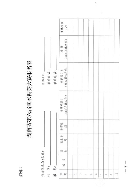 湖南省第六届武术精英大赛竞赛规程 一、主办单位 湖南省武术协会 二、承办单位 祁阳县人民政府 三、运营单位 祁阳县武术太极气功健身协会 湖南恒威体育文化交流有限公司 四、日期、地点 12月8-9日,祁阳县陶铸体育馆 五、参賽单位 各级各类武术组织,各有关单位均可组队参赛。 六、竟赛项目 (一)自选项目 自选长拳、自选南拳、自选太极拳、自选刀术、自选剑术、自选南刀、自选太极剑、自选枪术,自选棍术、自选南棍 (二)规定项目 太极八法五步、24式太极拳、42式太极拳、42式太极剑、少儿规定长豢、第一套国际套路规定长拳、第一套囯际套路规定刀术、第一套囯际套路规定剑术、第一套国际套路规定枪术、第一套国际套路规定棍术、亚运规定南拳、亚运规定南刀、亚运规定南棍。 (三)段位项目 长拳1-6段、陈式太极拳1-6段、杨式太极拳1-6段、吴式太极拳1-6段、自卫防身术1-6段、二节棍1-6段。 (四)对练项目 男子拳术对练、女子拳术对练、男子器械对练、女子器械对练。 (五)武艺项目 集体拳术、集体器械或集体拳术和器械混合。 (六)传统项目 形意拳、八卦掌、八极拳、通臂拳、劈挂拳、翻子拳、查拳、华拳、炮拳、红拳、少林拳、螳螂拳、鹰爪拳、地躺拳、醉拳、陈式太极拳、杨式太极拳、吴式太极拳、孙式太极拳、武式太极拳、传统短器械、传统长器械、传统软器械、传统双器械。 (七)传统门派项目 在省武术协会注册登记的门派拳种。 (八)其他拳种项目 与竞赛规程不符的项目,则归为其它拳种类项目。 七、竞赛组别 儿童组:12周岁以下(含12周岁,2007年1月1日之后出生者)。 少年组:13周岁至17周岁(2001年1月1日-2006年12月31日)。 青年组:18周岁至39周岁(1979年1月1日-2000年12月31日)。 中年组:40周岁至59周岁(1959年1月1日-1978年12月31日)。 老年组:60周岁以上(含60周岁,1958年12月31日之前出生者) 八、参赛办法 (一)每队报领队1人,教练员2人,运动员人数不限。 (二)每名参赛运动员可报2个单项(对练,武艺项目除外),不可重复选报同一项目或同一套路申报两个比赛项目。 (三)对练项目每队男女限报一对。 (四)武艺项目参赛人数必须8人或8人以上。 九、竞赛办法 (一)执行国家体育总局武术运动管理中心最新审定的2012年《武术套路竞赛规则》、《传统武术套路竞赛规则》及竞赛相关补充规定。 (二)项目比赛时间 1、规定套路不少于1分20秒,每少2秒扣0.1,依此累计; 2、自选项目不少于1分10秒,每少2秒扣0.1,依此累计;自选太极拳、剑2-3分钟,每超5秒扣0.1,依此累计; 3、传统项目不少于1分钟,每少2秒扣0.1,依此累计; 4、段位项目时间不作要求,只演练单练套路,按段位级别分类比赛。 5,传统太极拳,剑,太极八法五步、24式太极拳、42式太极剑2-3分钟,演练至2分钟时裁判长鸣哨提示,超过3分钟每5秒扣0.1,依此累计;42式太极拳3-4分钟,演练至3分钟时裁判长鸣哨提示,超过4分钟每5秒扣0.1,依此累计; 6、对练项目不少于50秒,每少2秒扣0.1,依此累计; 7、竞艺项目5分钟以内,超过5秒扣0.1,依此累计; (三)执行规定 1、各单位比赛项目运动员按秩序册顺序上场; 2、运动员选报A级难度(平衡、腿法、跳跃和跌扑类)时,最多选报3种不同类别的5个A级难度动作; 3、运动员选报不同等级的不同技术类型的动作难度和连接难度不得超过2次,超过规定者按前2次计算难度分数; 4、武艺大赛音乐要求:音乐伴奏必须是纯音乐,不得出现说唱等内容,若出现则由裁判长扣0.2分,音乐于领队、教练员会议时上交至竞赛组,无音乐者扣0.5分; 5,运动员比赛服装必须符合规则要求,要体现参赛项目特点、运动特色,否则不予参加比赛。 十、录取与奖励办法 (一)设套路团体奖,录取前六名,颁发牌匾。 (二)单项比赛按项目、组别、男女分别录取名次。传统门派以门派拳种为组别分别录取名次。 (三)各项目录取前6名,不足6人(含6人)减一录取;各项目前三名颁发金、银、铜牌和证书,第四名至第六名颁发证书。 (四)武艺项目:设一等奖(占参赛队伍数量30%)。二等奖(占参赛队伍数量40%),三等奖(占参赛队伍数量30%),颁发匾牌、证书和奖品。 (五)所有项目个人前6名积分如下:7、5、4、3、2,1,每队总分为团体总分。 十一、报名、报到及联系方式 (一)报名 1、报名时间:2018年11月10日前。 2、报名要求:请参赛队于2018年11月3日前,将报名表电子版报至408894324qq.com,纸质报名表邮寄至湖南省武术协会(长沙市岳麓区桐梓坡西路168号名名典国际酒店9楼武术协会办公室)逾期不予受理。 (二)报到 1、各代表队请于赛前1天到赛区报到。 2、裁判长、编排长、裁判员请于赛前2天到赛区报到,逾期报到者不予安排工作,且费用自理。 (三)联系方式 武术协会办公室:0731-88092986 瞿才学:15802537187 薛亚丽:13873186577 李静:13308434353 十二、经费 (二)参赛服务费:350元/人,(含赠送纪念品)。参赛服务费须在报名截止前汇入指定账号。 账号名:祁阳县武术太极气功健身协会 开户行:中国工商银行帐号 账号:1910020509200209391 账号名:桂素萍 开户行:中国建设银行卡号 账号:6236682990000855727 (二)武艺项目(集体项目):1000元/队 (三)参赛队往返交通,食宿费自理。 十三、裁判员的选派 仲裁委员会、总裁判长、裁长、骨干裁判员由湖南省武术协会进行抽调。辅助裁判由祁阳县武术太极健身协会补交。 十四、未尽事宜,另行通知。 责编:太极网萌萌 |