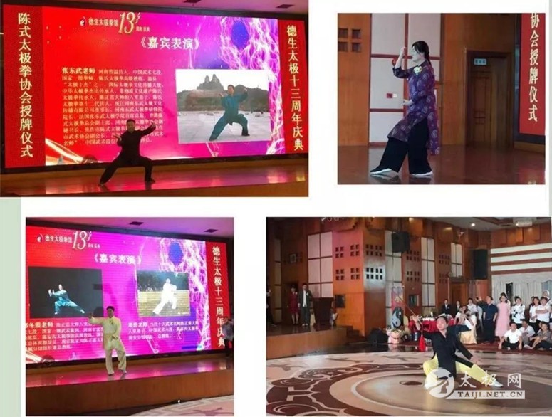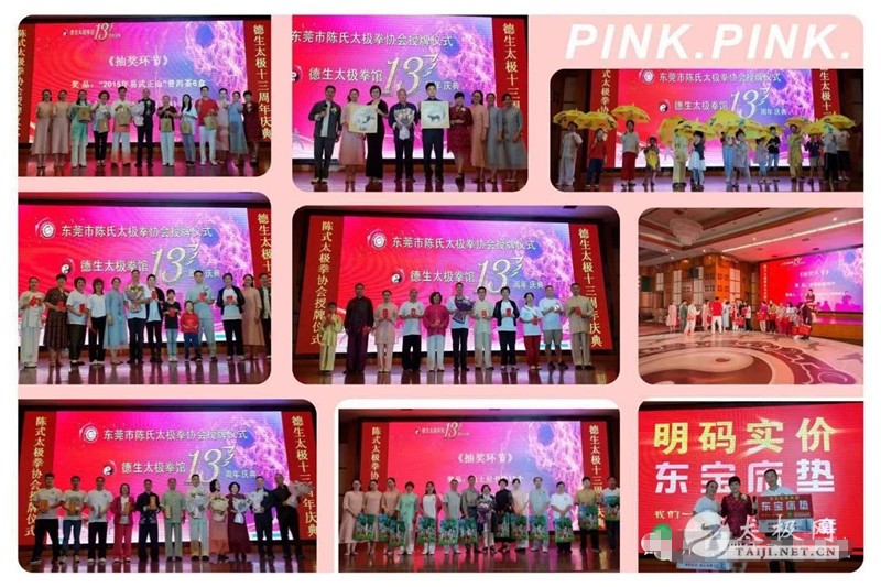 (太极网讯)10月27日,东莞市陈式太极拳协会授牌仪式暨德生太极拳馆第十三周年庆典在东莞市茶山方中酒店隆重举行,东莞市社管局社团科科长欧广豪及太极拳名家张东武、陈娟、郑冬霞、邓营等应邀出席。 此次庆典经过精心准备,组织了450余名太极拳爱好者参加庆典,邀请的两位主持人都是太极达人,幽默风趣的主持风格与太极主题互动结合相得益彰。现场花团锦簇,一派欢腾喜庆,东莞太极人和嘉宾齐聚现场共襄盛会。 东莞市陈式太极拳协会会长、德生太极拳馆馆长韩军生首先致欢迎词,向各到场嘉宾和太极拳界的前辈、好友表示欢迎,对拳馆多年来所取得的成绩进行了介绍,向多年来支持东莞市陈式太极拳协会发展的社会各界人士表示衷心的感谢。 东莞市陈式太极拳协会授牌仪式上,东莞市社管局社团科欧广豪科长和韩军生会长共同为协会副会长、监事长及秘书长等授牌,为感谢一直以来关心和支持协会发展的各位精英人士,韩军生会长为总顾问陈正雷授牌(由陈娟代领),韩军生会长为“专家顾问”张东武、陈娟、郑冬霞、邓营等人授牌。 德生太极,铸剑十年。当晚东莞德生太极拳馆成立十三周年庆典拉开序幕,每年的馆庆太极表演都是一大亮点,各分馆分别进行了集体表演,节目形式丰富,令人目不暇接。 各场馆太极拳表演 张东武、陈娟、郑冬霞、邓营等纷纷登台进行了精彩的太极拳名家表演,他们刚柔并济、轻灵舒缓的拳架引人入胜, 韩军生会长精彩的压轴表演,把活动气氛推向了高潮。 庆典上抽奖、墨宝馈赠等环节激动人心,拳友们满怀着对太极拳的热爱、对拳馆、拳友们的友爱,礼堂里一派喜气欢腾,其乐融融。 十三年众志成城,十三年砥砺奋进,德生太极拳馆用智慧和汗水书写了一部太极拳的壮丽史诗。 韩军生向全体来宾和拳友表示感谢,对庆典活动各位志愿者的辛苦付出、各位嘉宾朋友的支持祝福、各位太极家人的支持和陪伴表示诚挚谢意,号召大家不忘初心、砥砺前行,为太极拳运动的推广和传播不懈努力,做出应有贡献。 本站责编:张欢 |