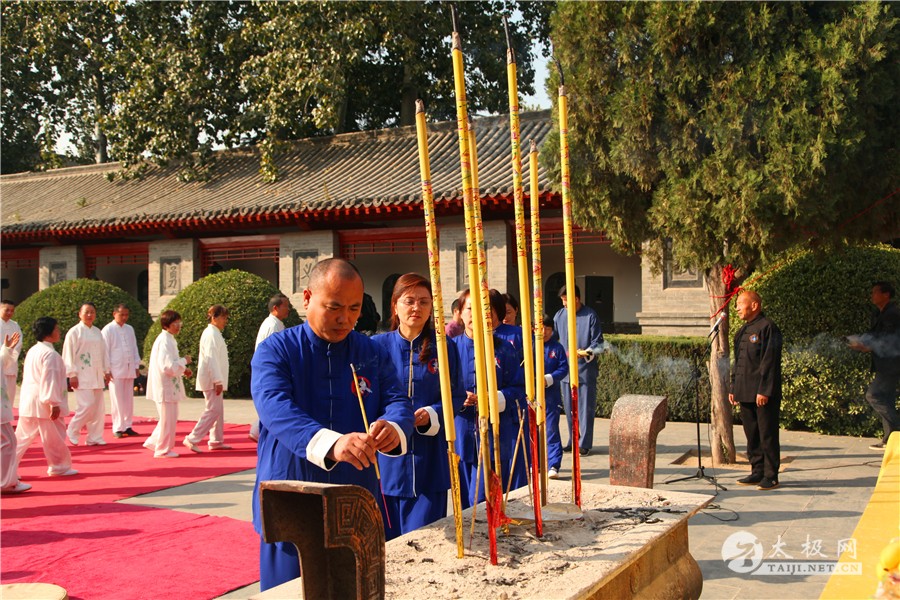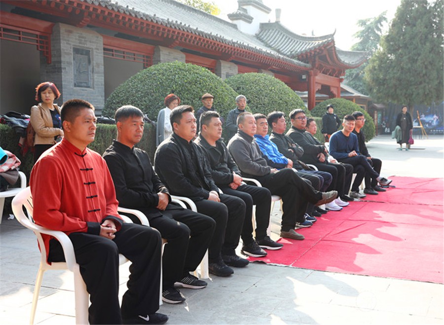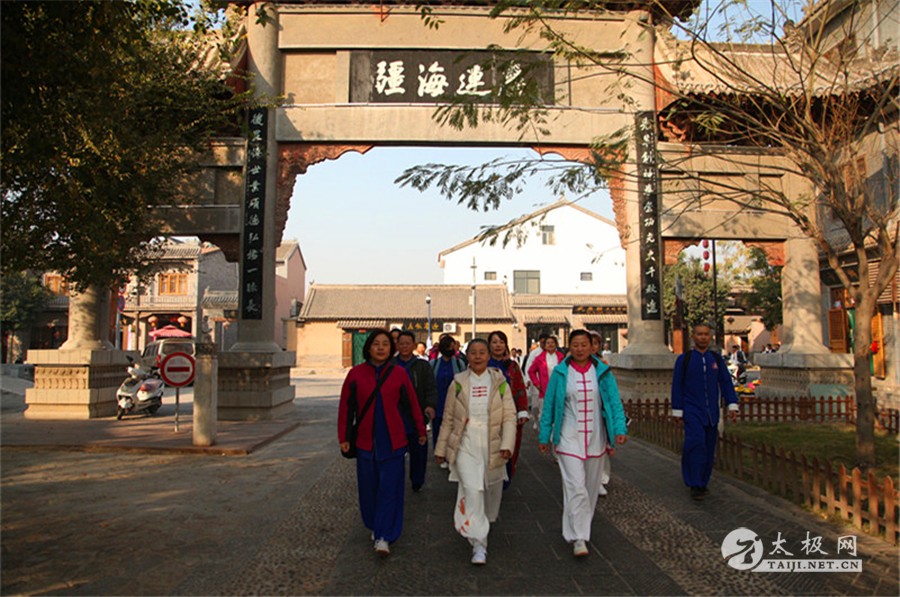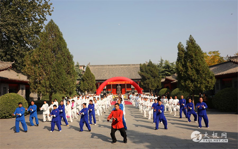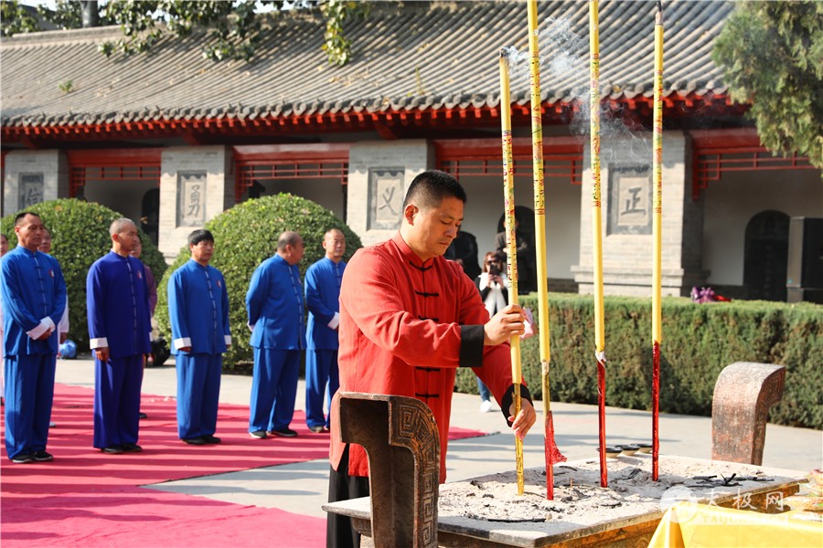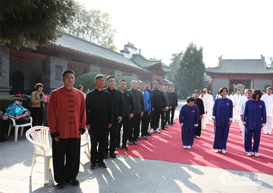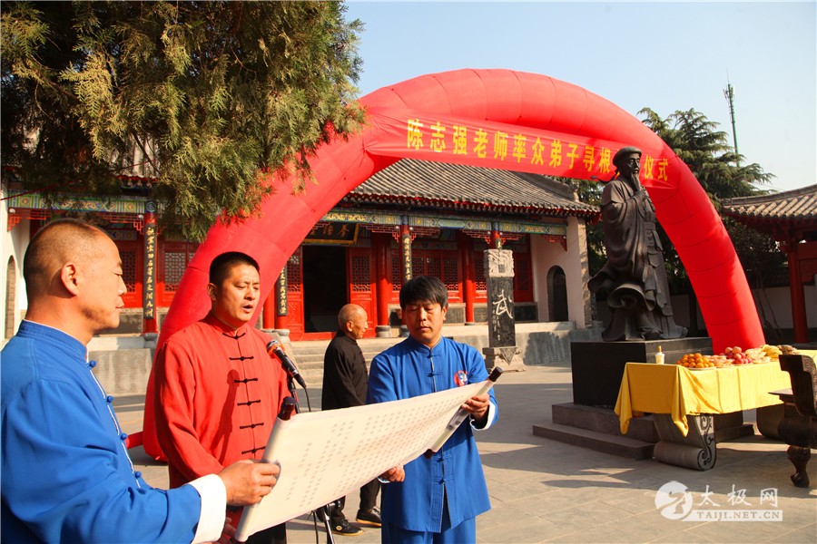 列队前往太极拳祖祠 太极拳展演 寻根祭祖仪式由陈家沟陈氏家族理事会陈石岩主持,陈家沟太极拳“八大天王”张福旺、陈冲、陈大虎、陈二虎,陈家沟太极拳名家辛强、陈三虎、陈志伟、陈绍杰、马骉等嘉宾出席见证。