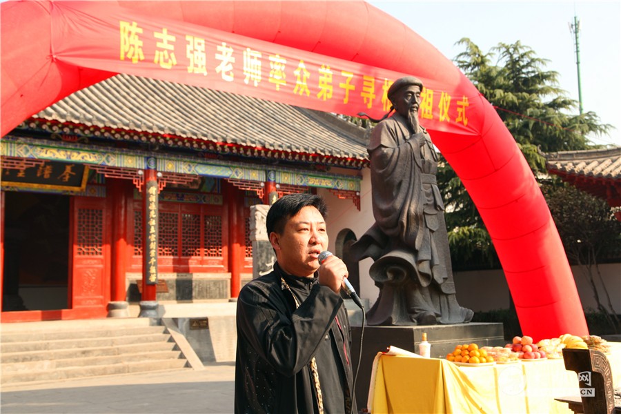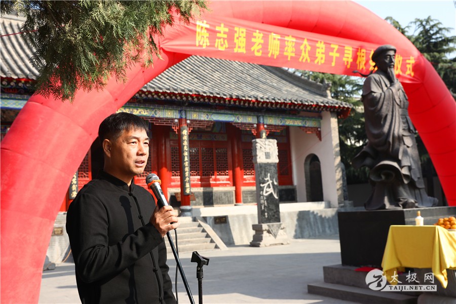 出席嘉宾 祭祖仪式遵守传统礼节简洁而庄重,仪式上陈志强宣读拜祖文,并上香、敬酒、行叩拜大礼,之后新老弟子依次向太极拳始祖上香,追溯缅怀太极拳历代宗师。 祭祖现场 陈石岩主持 陈志强宣读祭文 陈志强上香祭祖 弟子上香祭祖 马骉对前来参与寻根祭祖仪式的太极拳爱好者们表示欢迎,并祝祭祖仪式圆满成功。 陈家沟太极拳八大天王之一、陈家沟功夫馆馆长张福旺表示太极拳是中华优秀传统文化的杰出代表,追本溯源是中华民族的传统美德,希望大家通过这次的活动,能够进一步深化对太极拳、对太极圣地陈家沟的了解,对太极根文化有更好的认识。 马骉致辞 张福旺致辞 祭祖仪式之后,陈志强率众弟子在太极拳博物馆门前内演练太极拳套路,百余名拳友太极圣地共武太极,场面壮观,寻根活动画上圆满句号。 陈志强老师领练太极拳 参加寻根活动的拳友纷纷感叹不虚此行,这次感受到陈家沟的魅力无究,感受到太极拳的博大精深,更加领悟了习拳的精神,那就是坚韧、坚强、坚持。 陈志强表示,这次带领学员们回到陈家沟,回到太极拳发源地,让自己的太极“回家”,让自己的太极之路看到了起点,今后将会多组织类似的活动,让更多的人走进陈家沟,了解最正宗的太极拳文化,从而更好的学习太极拳,更好的为太极拳的传播和推广做贡献。 合影留念 据了解,当日下午陈志强太极拳讲座正式开讲,太极网将全程直播,更多精彩报道请关注太极网。 点击链接观看直播太极档案: 陈志强,1974年出生于太极拳发源地河南省温县陈家沟,系陈氏十九世太极拳嫡宗传人、太极拳“八大天王”之一、非物质文化遗产项目陈氏太极拳代表性传承人、中国武术七段、中国武术段位考评员、指导员、国家一级武术裁判、国家一级社会体育指导员、一级拳师、广东省群众喜爱的社会体育指导员、广东省优秀社会体育指导员、河南省优秀裁判员、焦作市优秀太极之家、第九届温县工商联(总商会)副会长、第九届广州市花都区政协委员、陈家沟太极拳推广中心副主任、陈家沟太极拳总会副会长、陈家沟太极拳研究会会长兼总教练、陈志强太极拳推广中心总教练、广州市花都区太极拳协会会长兼总教练。 本站责编:张欢 |