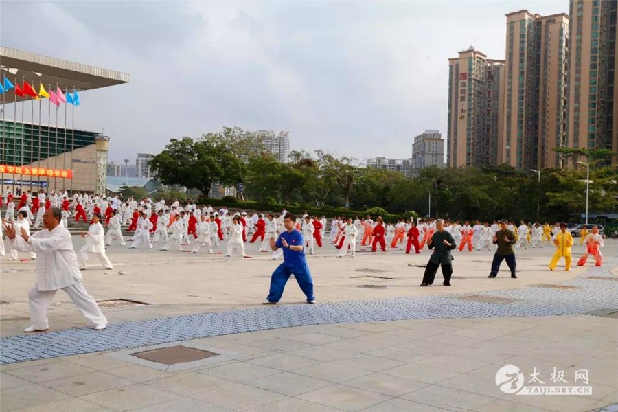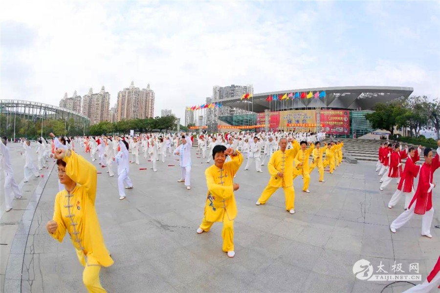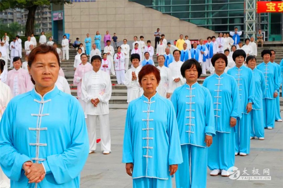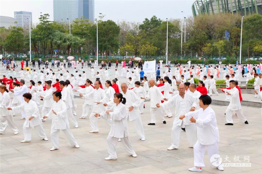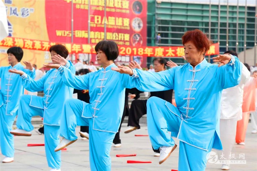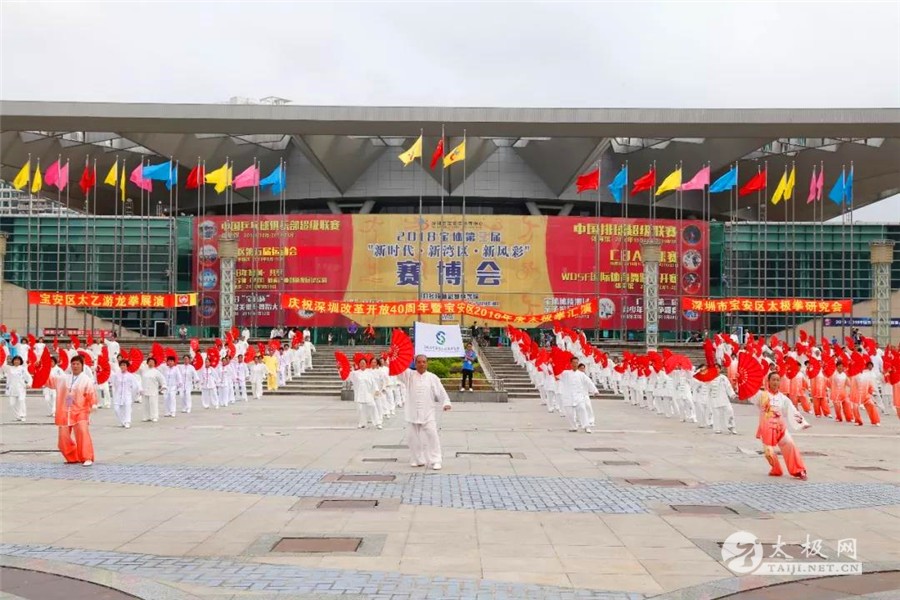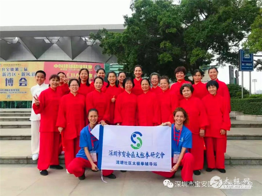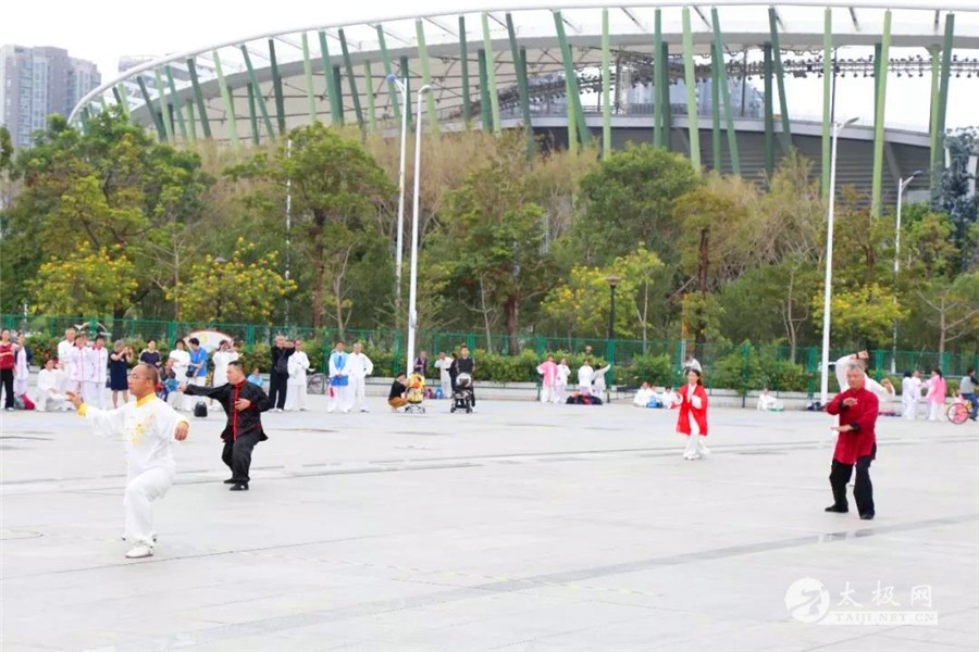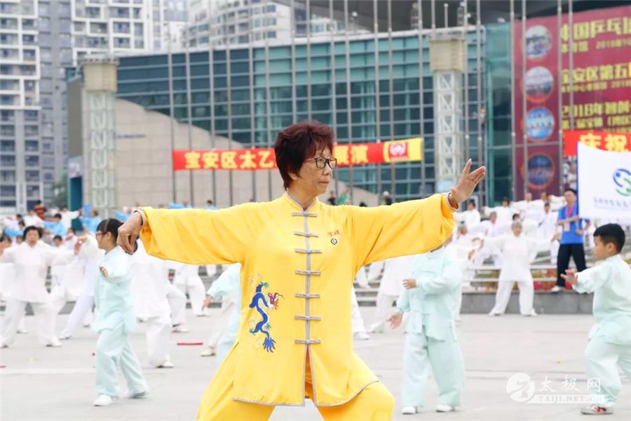 为庆祝深圳改革开放40周年暨深圳市宝安区太极拳研究会成立一周年,宝安区太极拳研究会于2018年11月10日在宝安体育馆南门广场举行了隆重的太极拳汇演活动。此次汇演共有28支队伍700余人参加,其中宝安区22个辅导站,福田、罗湖、龙华、南山、龙岗等区的6支队伍应邀参加表演。精彩的拳艺汇演传承了太极文化的精髓,展现了新时代太极人的风采。 出席此次活动的嘉宾有: 宝安区文体旅游局副局长卢清 宝安区文体旅游局体育科科长刘永祥 宝安区老龄办陈冰 深圳市太极拳研究会党支部书记、副会长杨广德 深圳市太极拳研究会副会长、深圳市社会体育指导员协会会长助理刘筠 中国武术七段、大宋体育产业股份有限公司董事局主席、杨氏太极第五代传人、宝安区太极拳研究会技术总顾问宋斌 天年之家柏慧 中国武术六段、中国武术段位制考评员、指导员、宝安区太乙游龙拳主要传播者江慧莲 杨氏太极拳103式深圳主要传播者魏国梁、石秋莲、肖佑光 中国武术六段、国家一级社会体育指导员、中国武术段位指导员、考评员、中国武术二级裁判员魏兆兰 中国武术六段、深圳市龙华区福城湘燕太极拳协会会长刘彩艳 武当赵堡太极拳第十四代传人、罗湖区品之唐太极拳协会会长唐仲春 陈家沟太极拳第十三代传人、深圳市太极拳研究会常务理事兼坂田太极辅导站站长龙秀文 中国武术六段、陈氏太极拳第十二代传人付碧云 陈式小架太极拳第11代传人贾洪新 宝安区太极拳研究会会长谢勤先生致欢迎辞,表示将继续开展各项培训和活动,不断提高会员的技术水平,让每一位参与者都享受太极拳带来的快乐与健康。