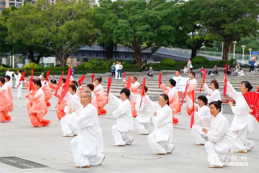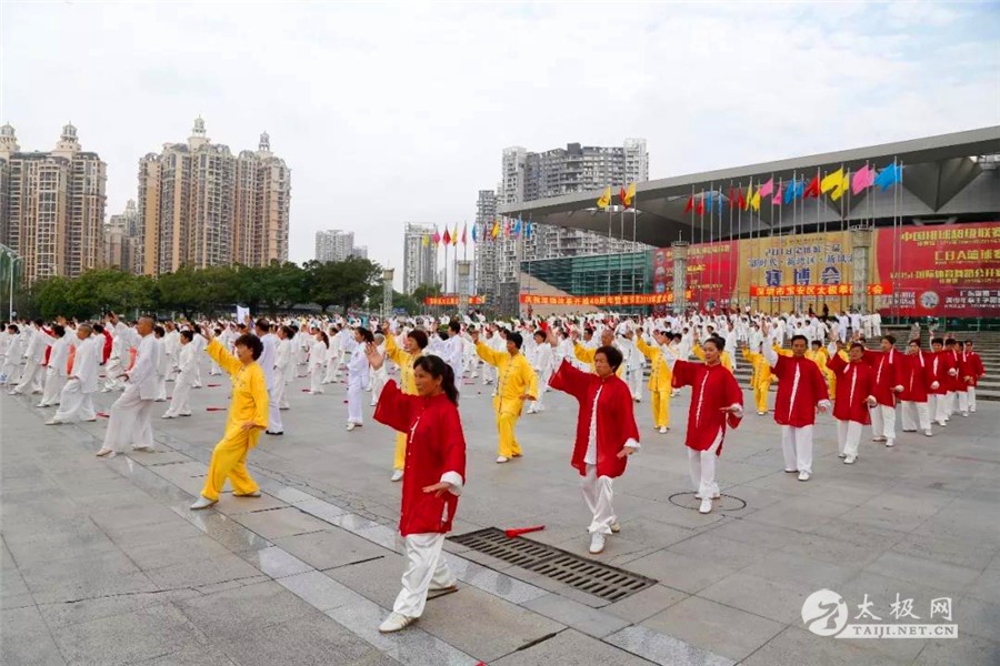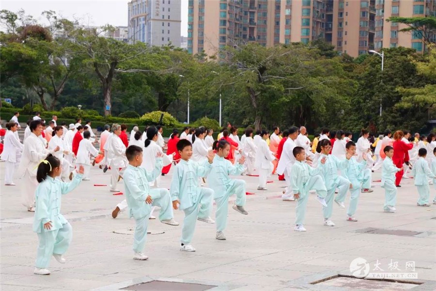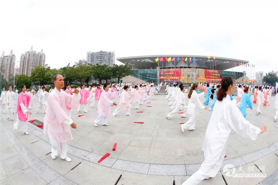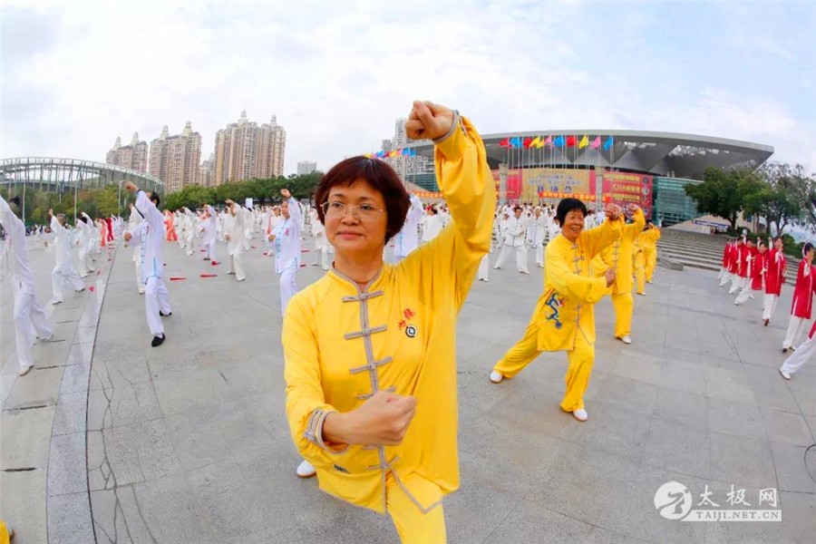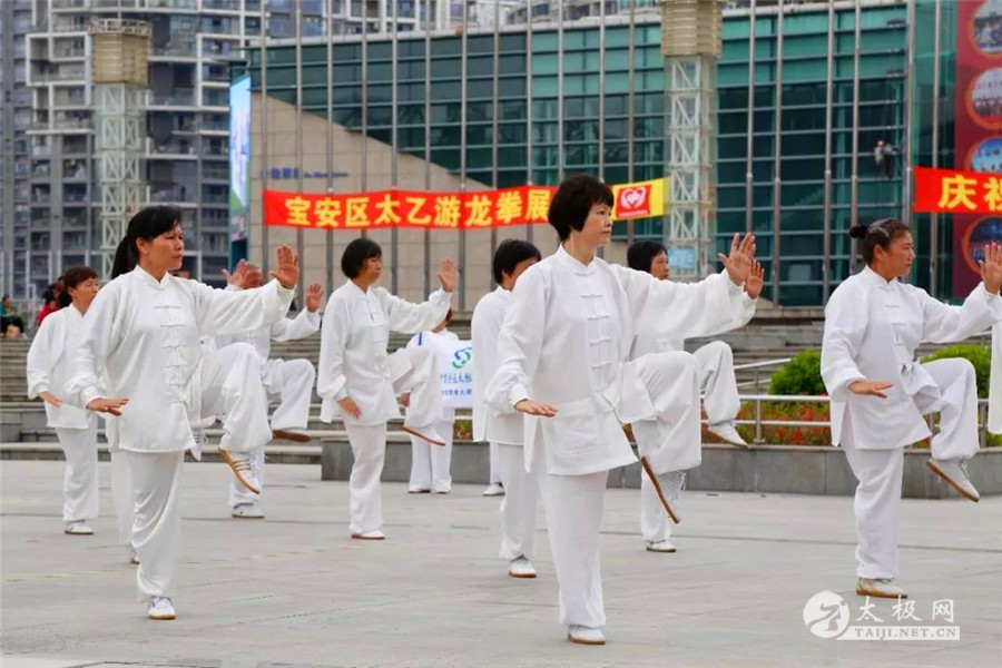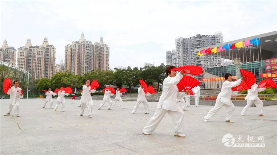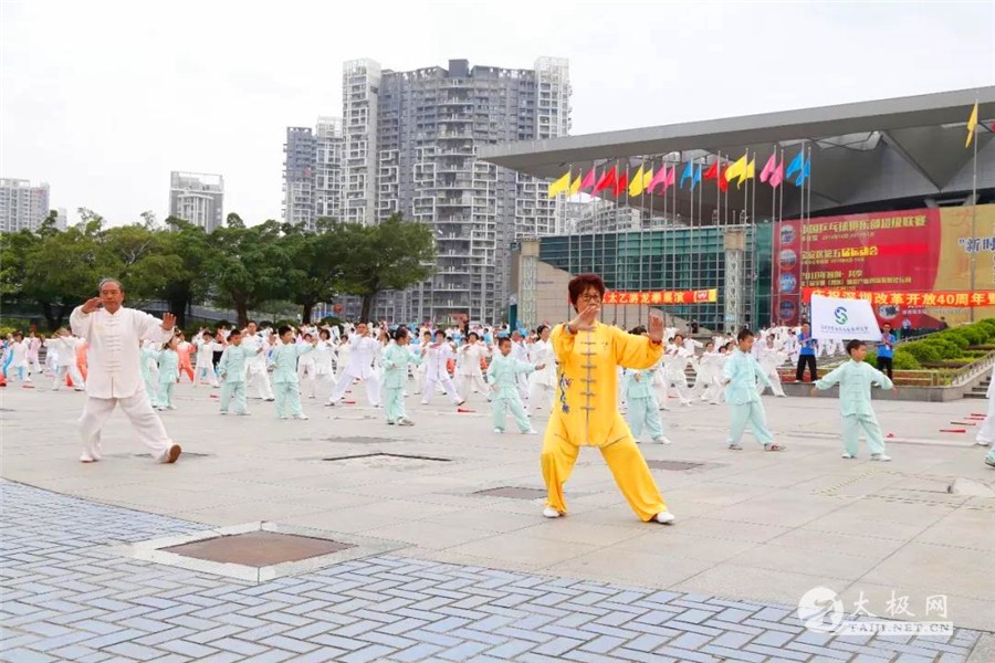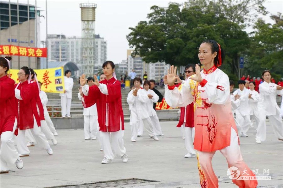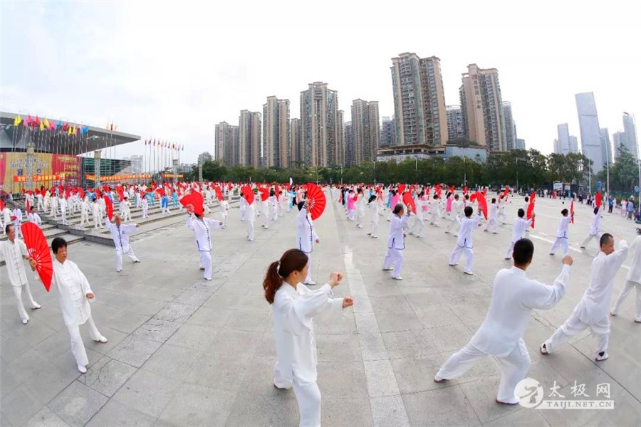 为庆祝深圳改革开放40周年暨深圳市宝安区太极拳研究会成立一周年,宝安区太极拳研究会于2018年11月10日在宝安体育馆南门广场举行了隆重的太极拳汇演活动。此次汇演共有28支队伍700余人参加,其中宝安区22个辅导站,福田、罗湖、龙华、南山、龙岗等区的6支队伍应邀参加表演。精彩的拳艺汇演传承了太极文化的精髓,展现了新时代太极人的风采。 出席此次活动的嘉宾有: 宝安区文体旅游局副局长卢清 宝安区文体旅游局体育科科长刘永祥 宝安区老龄办陈冰 深圳市太极拳研究会党支部书记、副会长杨广德 深圳市太极拳研究会副会长、深圳市社会体育指导员协会会长助理刘筠 中国武术七段、大宋体育产业股份有限公司董事局主席、杨氏太极第五代传人、宝安区太极拳研究会技术总顾问宋斌 天年之家柏慧 中国武术六段、中国武术段位制考评员、指导员、宝安区太乙游龙拳主要传播者江慧莲 杨氏太极拳103式深圳主要传播者魏国梁、石秋莲、肖佑光 中国武术六段、国家一级社会体育指导员、中国武术段位指导员、考评员、中国武术二级裁判员魏兆兰 中国武术六段、深圳市龙华区福城湘燕太极拳协会会长刘彩艳 武当赵堡太极拳第十四代传人、罗湖区品之唐太极拳协会会长唐仲春 陈家沟太极拳第十三代传人、深圳市太极拳研究会常务理事兼坂田太极辅导站站长龙秀文 中国武术六段、陈氏太极拳第十二代传人付碧云 陈式小架太极拳第11代传人贾洪新 宝安区太极拳研究会会长谢勤先生致欢迎辞,表示将继续开展各项培训和活动,不断提高会员的技术水平,让每一位参与者都享受太极拳带来的快乐与健康。