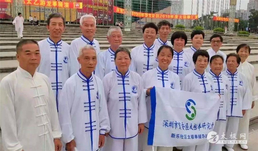 宝安区文体旅游局副局长卢清先生发表了热情洋溢的讲话,表示研究会成立一年来,所有会员团结协作,勇克困难,积极开展我区群众性的的太极拳活动,让越来越多的居民参与进来,促进了邻里和谐,增加了宝安区体育活动的多样性。有效的推动了我区太极拳的交流与发展,希望宝安区太极拳研究会继续推进工作,做好太极拳培训、比赛、交流和表演活动,吸引更多的人参与进来,不断取得新的进步。                                                              合影留念 汇演现场,与会嘉宾及各代表队纷纷上场献艺,拳剑刀扇、推手对练,精彩纷呈,为大家带来了一场饕餮盛宴。同时也是对太乙游龙拳年度培训的一次大检阅,参演的太极拳爱好者中,最年长的已有85岁,最小的仅有6岁,大家纷纷加入太极拳的习练行列,强身健体,修身养性,共同乐享人生。 |
