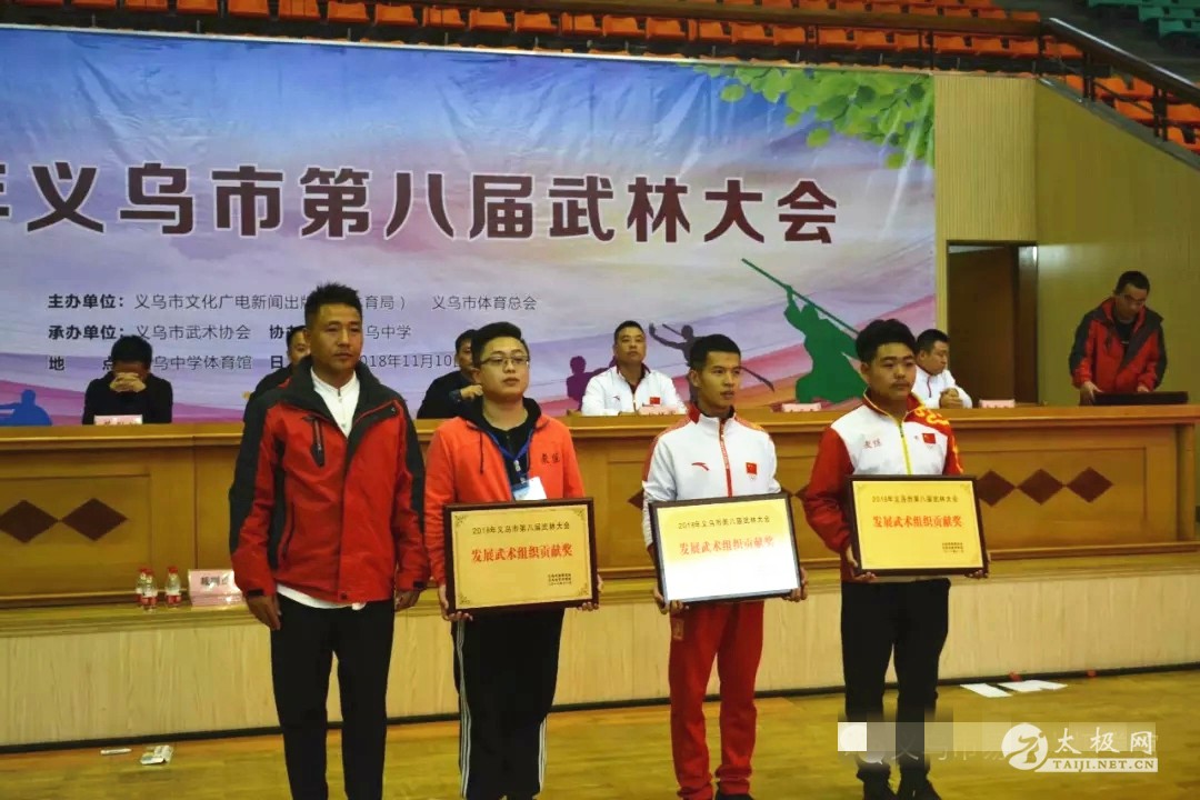 (太极网报道)2018年11月10日早上,由义乌市文化广电新闻出版局(体育局)、义乌市体育总会主办,义乌市武术协会承办,义乌中学协办的义乌市第八届武林大会隆重开幕。 金华市体育局体育总会专职副主席、金华市武术协会主席张国强,金华市体育局副局长童伟民,义乌市人民政府副市长骆小俊,义乌市文化广电新闻出版局(体育局)局长楼小明,义乌市文化广电新闻出版局(体育局)副局长周美才,义乌市教育局党委委员、义乌中学校长朱跃望,义乌市文化广电新闻出版局(体育局)副局级纪检员、义乌市体育总会秘书长王拥军,义乌市文化广电新闻出版局(体育局)办公室主任叶献民,义乌市文化广电新闻出版局(体育局)体育科科长丁文永,金华市武术协会副主席、义乌市武术协会主席吴冬虹等领导出席了开幕仪式。 领导讲话 本次大会由义乌市文化广电新闻出版局(体育局)副局长周美才主持。金华市体育局体育总会专职副主席、金华市武术协会主席张国强在致词中祝贺本次大会顺利圆满举行,义乌市文化广电新闻出版局(体育局)局长楼小明致欢迎词,对各位领导、嘉宾的到来表示欢迎,并介绍了义乌武术历史渊源、现在状况,并对未来发展做出了美好的展望。义乌市人民政府副市长骆小俊宣布2018年第八届武林大会开幕。 开幕式节目精彩纷呈,三百多人参演,上至矍铄老者,下至精武少年,开幕式的武术展演震撼全场,给义乌人民带来了一场别开生面的武术视觉盛宴。特别是武术协会的20位理事们带来的义乌本土拳种《五虎拳》,他们动作灵活,如雏鹰展翅,热情奔放,似猛虎下山,虎虎生威,如凌波踏浪,又似蛟龙出水,震撼人心,给人以美的享受。20位武协理事中吴国荣、王湖斌、吴小飞三位是易合(明道)太极培养出来的优秀代表。 武协主席吴冬虹为在全国武术之乡武术比赛中获得金牌的吴国荣颁发奖金 领队李林森会长上台领取“武术道德风尚奖” 义乌市武术协会副主席王国营老师为获得“发展武术组织贡献奖”的代表队颁奖 经过两天的激烈角逐,易合(明道)太极全体参赛队员共获得了三十五个一等奖、二十个二等奖、十六个三等奖,并被评为“武术道德风尚奖”。 其中集体项目比赛以全场最高分获得第一名,而且是集体项目唯一9分以上的代表队。因优异的表现被大会组委会秘书长、义乌市武术协会主席吴冬虹慧眼识珠,特邀参加闭幕式上表演,赢得大家一致好评。 一年一届的武林大会已落下帷幕,大家意犹未尽,纷纷相约来年再会,再展我武林豪杰之风采。 赛场部分剪影 义乌市易合(明道)太极拳馆获奖队员名单: 一等奖 李众星 五步拳 吴宇森 五步拳 张哲卿 五步拳 廖贤裕 太极单刀 周童畅 陈式太极拳、太极单刀 陈跃童 太极推手、集体太极剑 郭兴华 陈式太极拳、太极推手、集体太极剑 琚雪荣 集体太极剑 张晓波 陈式太极拳、陈式太极剑、太极推手 张芳芳 陈式太极剑、集体太极剑 倪红萍 陈式太极剑、太极推手、集体太极剑 刘秀聪 陈式太极拳 杨春芳 陈式太极剑 张有华 集体太极剑 吴国荣 集体太极剑 周新中 太极推手、集体太极剑 张乐绪 陈式太极拳、陈式太极剑 董煌稈 陈式太极剑、太极推手 吴英俊 太极行功棒 楼文四 顶碗 陈林森 太极拳、陈式太极棍 张林生 五支夹枪棍 二等奖 廖贤裕 陈式太极拳 楼振南 陈式太极拳 李凯星 五步拳 蓝青田 陈式太极拳 杨一杭 陈式太极拳 陈跃童 陈式太极拳、陈式太极剑 郭兴华 太极单刀 张 强 陈式太极拳、陈式太极剑 董煌稈 陈式太极拳 周新中 陈式太极拳、太极大刀 傅更清 陈式太极拳 吴天林 陈式太极拳 楼文四 杨式太极拳 刘若虹 陈式太极拳 张芳芳 陈式太极拳 倪红萍 陈式太极拳 高雪娟 陈式太极剑 三等奖 楼振南 太极单刀、太极推手 廖贤裕 太极推手 周童畅 太极推手 蓝青田 太极单刀 吴宇森 太极单刀 吴伟帆 陈式太极拳 李柏宏 陈式太极拳、太极单刀、太极推手 吴英俊 陈式太极拳 吴天林 太极大刀 张林生 小金刚拳 刘若虹 陈式太极剑 高雪娟 陈式太极拳 杨春芳 陈式太极拳 责编:太极网萌 |