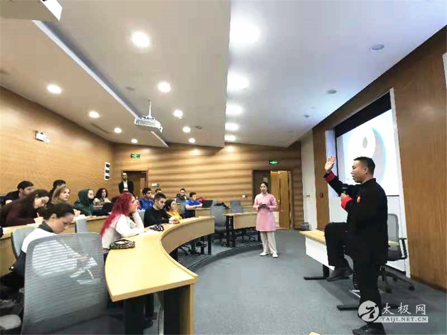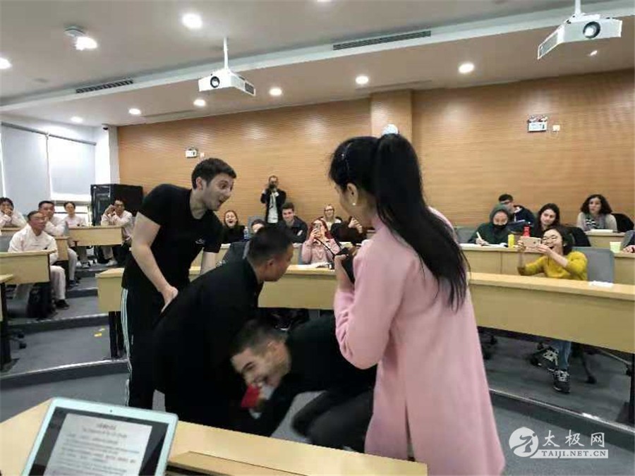 (太极网报道)2018年11月14日,再次受上海华东理工大学盛情邀请,当代太极拳名家,陈式太极拳第十三代传人、国家太极拳高级教练褚亚龙为MBA班教授太极拳,来自欧洲各国的近三十名留学生参与了学习,跟随褚亚龙老师探讨太极文化,感悟国粹魅力。 褚亚龙老师课堂讲解及示范 课堂上褚亚龙老师主要讲解了太极文化:太极拳的形成、现状,陈式太极拳的特点,太极拳的养生功效与技击实战作用,随后带领大家感悟太极拳站桩功、缠丝功,现场气氛十分高涨,留学生学习特别认真,他们纷纷表示对中国传统武术有了进一步认识,对中国太极文化有了进一步了解。 学员认真做笔记 褚亚龙老师教授缠丝功、指导学员动作 拳法精湛、身手不凡、功力深厚的褚亚龙老师让众留学生大开眼界,他们热血沸腾,都想以后还能有幸得到褚亚龙老师的指导,学习更多的太极文化。褚亚龙老师非常欣慰,他说太极拳是中国传统文化的瑰宝,是中华民族文化的优秀遗产之一,自己会不忘初心,牢记使命,为将太极弘扬至全世界而不懈努力。 合影留念 褚亚龙老师为留学生展示陈式太极拳 褚亚龙: 陈式太极拳第十三代传人,从学于国际太极拳大师陈庆州,师承陈庆州次子陈有京,当代太极拳名家,多次荣获全国及国际太极拳大赛冠军。现任国际太极拳联合会副会长,河南睢县太极拳协会名誉会长,中共睢县第十二届政协常委。被评为“全国十大馆校长”,“太极拳十大杰出青年”,“上海地区优秀太极拳传承人”,“太极拳传播大使”,《少林与太极》杂志封面人物,作为社会名人入编《睢县年鉴》国家图书馆,省图书馆,县图书馆均有收藏。 2011年褚亚龙老师到上海授拳,因其为人端正,功夫精湛,教学严谨,追随者日益增多,几年来教授学员达3000余人,褚亚龙在上海创办了上海尊古太极俱乐部,注册人员500多人。2016年受太仓彬彬豆业董事长陈利兵邀请前来太仓授拳。太仓人杰地灵,环境清幽,且紧挨着上海,交通方便。在多方努力下褚亚龙终于创办尊古太极拳馆,旨在能给太仓和上海人民带来健康,给太极拳爱好者交流学习的平台。 责编:太极网萌 |