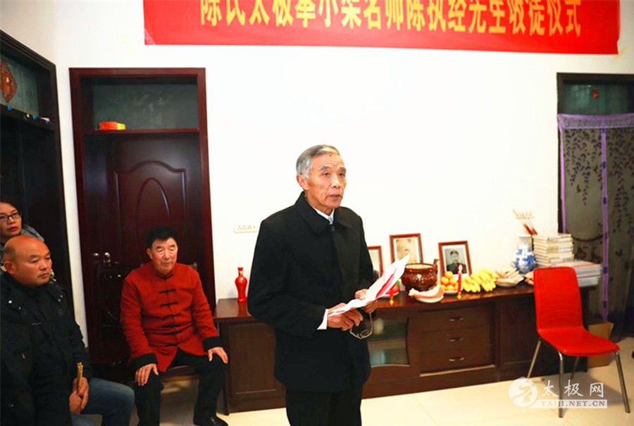 陈景安讲话 见证人代表、陈家沟陈氏家族族长陈景安表示:陈执经老师是陈家沟陈氏太极拳小架当代优秀传承人之一,多年来为太极拳的传播和推广做出了积极的贡献。祝贺本次拜师入门的弟子得遇良师,将在老师的教导下迅速成长,成为传承太极拳、弘扬太极文化的中流砥柱,愿大家携手为太极拳事业的蓬勃发展贡献力量。