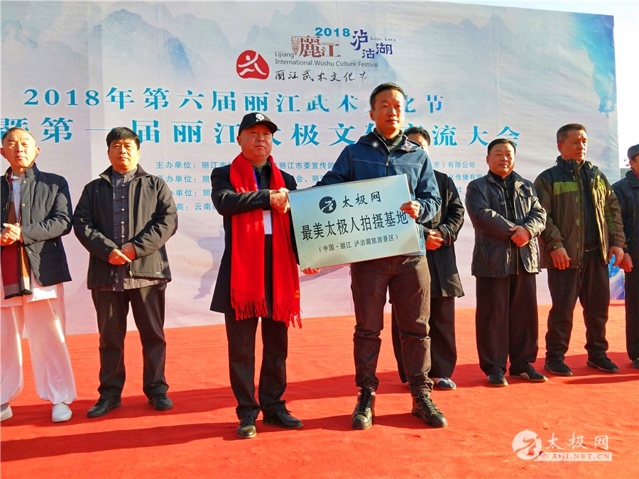 (太极网报道)七彩云南大美丽江,武术为媒聚五湖四海,扬中华国粹!人间仙境泸沽湖畔,因网结缘会天下拳友,享天人合一!11月25日,来自全国各地的45支代表队近五百名太极拳爱好者相聚在堪称人间仙境的丽江泸沽湖,伴随着精彩纷呈的太极拳表演,天人合一的壮美画面恢弘巨现。由丽江市体育局、太极网、文宇文化传媒(北京)有限公司主办,丽江国际武术文化节组委会、丽江石莲文化传播有限公司、丽江意和文化传播有限公司承办的2018年丽江武术文化节暨太极文化交流观摩大会震撼开幕,各流派太极拳爱好者于泸沽湖畔以武会友,共享太极文化盛会。活动得到了丽江市委宣传部的支持,受到了当地政府及景区的大力配合和支持。