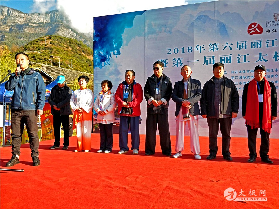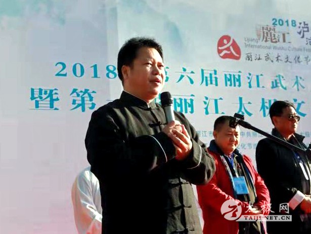 太极网创始人刘洪奇在致辞中代表主办方对本次活动的领导和嘉宾以及来自全国各地的拳友表示热烈的欢迎和衷心的感谢。希望全体参赛选手在泸沽湖上尽情释放太极拳魅力,展示太极人于大美山水间天人合一的神韵风采。刘洪奇表示,太极网致力于太极文化传播和太极文化产业生态圈建设20余载,多年来为广大太极人搭建平台举办各类武术活动,旨在让太极人以武为媒、以网为媒,交流、交心、交朋友。同时对活动承办方丽江武术节组委会、丽江武术协会等表示感谢。