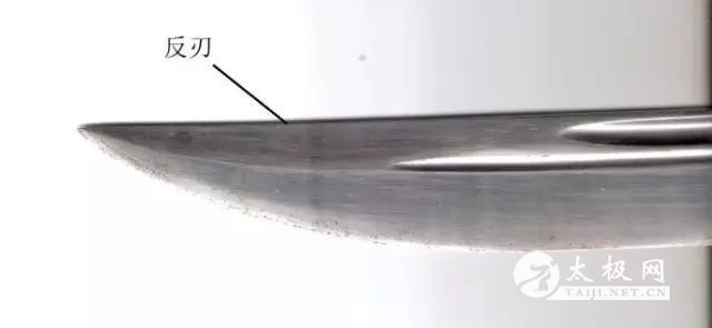 阿拉伯骑兵割日尔曼士兵的头颅 马步芳匪徒也用这种刀法杀害过我们西征的红军将士(红军指挥员孙玉清同志就是被他们用这种刀法残酷地割下人头的) 刀尖与刀环 刀通常是一侧开刃,另一侧就是刀背,如果在刀背部也开刃,这称之为“反刃”,太极刀在刀的尖部也有“反刃”,这样,太极刀就具备了剑的特征了(剑就是两边开刃的),太极刀就成了一把带有弯度的剑了。于是乎,就拓展了太极刀的功能,它不仅能象刀那样劈、砍,还能象剑那样击、刺。