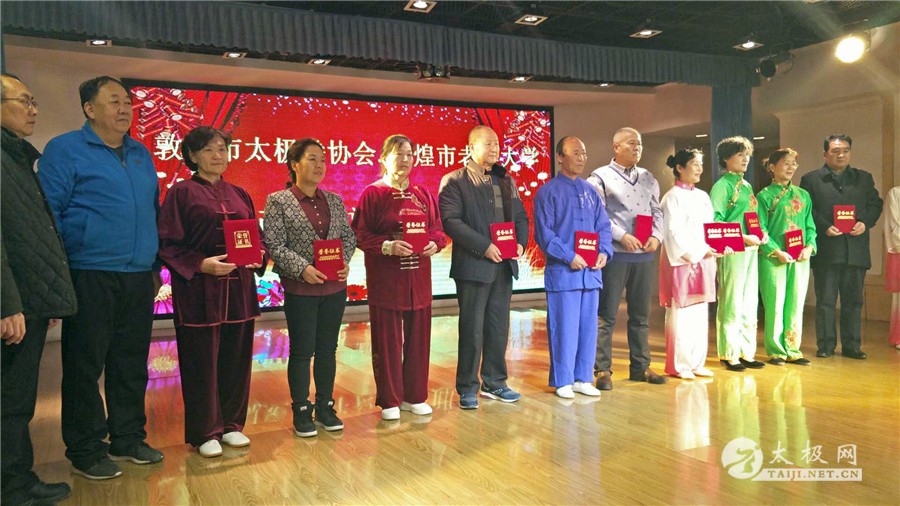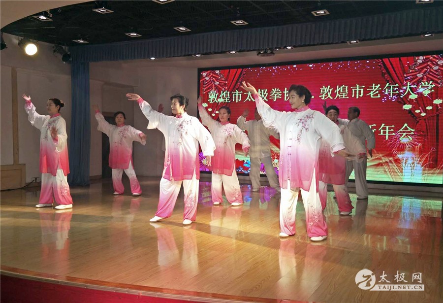 (太极网报道)2018年12月23日,甘肃省太极拳协会敦煌辅导中心、敦煌市太极拳协会庆祝改革开放40周年迎新年会在敦煌市太阳大酒店隆重举行。敦煌市体育中心副主任许庆胜,敦煌市教育局副局长胡光文,敦煌市太极拳协会会长朱鑫,副会长辛振岐,副会长张翠萍出席了大会。 甘肃省太极拳协会敦煌辅导中心主任、敦煌市太极拳协会会长朱鑫作了2018年总结报告并指出,2018年敦煌市太极拳协会通过内强素质,外树形象,扩大人们对太极拳的了解和认识,一年来举行了一系列的活动,其中组织大型的百人以上的表演活动三次,演出活动4次,交流活动3次,参加省级以上比赛一次。通过这些活动,扩大了太极拳在群众当中的影响,增强了团队精神,取得了丰硕成果。 大会还聘请了敦煌市太极拳协会教练员,对2018年涌现出的先进个人进行了表彰奖励。(先进个人名单:万玉萍,李生康,荆秀英,童金芬,杨丰萍,张爱萍,张启英,殷杰,康晓琴,宋亮,芦中玉,陈金芬,祁秀莲) 丰富多彩的文艺和太极表演助阵年会,节目《红红的日子》拉开大会帷幕。精彩纷呈的敦煌拳、杨式太极剑、陈式太极拳、中华响扇等节目赢得观众的阵阵掌声,旗袍秀《梦里水乡》作为最耀眼的节目压轴上场,独居风骚,博得大家赞赏叫好。 敦煌市太极拳协会在倡导全民健身活动中发挥了积极作用,为建设和谐、民主、美丽新敦煌做出了极大贡献。新的一年,他们将不畏困难,砥砺前行,为健康中国服务全民做出更多努力,为将太极拳事业发扬光大奋斗不止。 本站责编:太极网萌 |