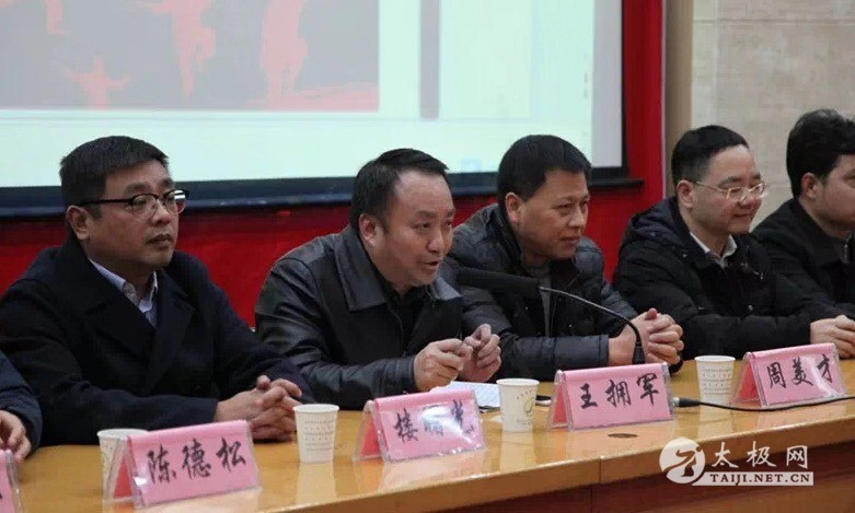 义乌市文化广电新闻出版局(体育局)副局级纪检员、义乌市体育总会秘书长王拥军同志作贺词,局领导肯定了义乌市武术协会在2018年工作及取得的成绩,并对2019年武协的工作提出了要求和期望。