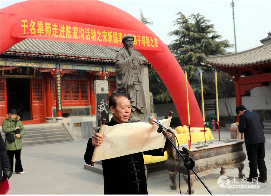 (太极网报道)2018年12月31日,在辞旧迎新的特殊日子里,太极拳发源地温县陈家沟迎来了一批特殊的太极人! 太极根源陈家沟,不忘初心守传承!宋新国,三十年前学艺陈家沟,师从陈家沟太极拳大师陈春雷,而后遍访全国传拳授艺,三十年后桃李满天下。于1996年之后时隔二十余年,宋新国率领来自湖南、广东、福建、香港以及美国的弟子学员百余人重回陈家沟,开启寻根之旅。 寻根团在陈家沟 因缘际会,创立于1997年的太极网与宋新国老师结识,此次寻根之旅前期筹备太极网与宋新国太极团队多次沟通接洽促成此行,太极网创始人、温县太极拳传承人联合会主席刘洪奇亲自接待宋新国一行到访。据悉,宋新国与陈家沟的深厚太极情缘始于一本“杨露禅陈家沟偷拳”的连环画,自幼嗜武的宋新国于1985年即到陈家沟学拳,而后多次造访随陈春雷等诸多太极大家深造至1996年。学得一身正宗太极功夫的他,遍访全国各地传拳授艺,所授学生万余人,弟子学员遍布海内外。多年来情系陈家沟,恪守恩师教诲弘扬太极。此次寻根之旅积极响应了太极拳发源地温县“千名拳师走进陈家沟”的活动号召。 宋新国带领一行人首先到访已故恩师家中探访师母及恩师之子陈迎战等。随后来到恩师陈春雷墓碑前祭拜,众人谦卑恭敬,依次向陈春雷宗师上香行礼,恭敬致祭。现场宋新国触景生情,向弟子们谈及与恩师学拳记忆,情难自禁多次哽咽。并嘱咐大家要不负恩师教诲,铭记太极传承根源,将太极拳这一人类文化瑰宝发扬光大,造福大众。 宋新国带领弟子祭拜恩师陈春雷 作为陈家沟太极拳学校建立的最早一批的外来学员之一,宋新国被陈家沟老一辈所熟悉,在太极网的协调下,陈家沟陈氏家族理事会热情地接待了一行,为此于太极拳祖祠隆重举行了祭祖仪式。 祭祖仪式由陈家沟陈氏家族理事会陈石岩主持,温县太极拳武术文化管理中心副主任范小涛,河南省太极拳协会副主席、温县太极拳研究院院长陈沛林,陈家沟太极拳理论研究院院长冯树理,陈春雷之子陈迎战等应邀出席。 仪式遵循传统、简洁庄重。宋新国宣读拜祖文,陈家沟陈氏家族族长陈景安和宋新国先后向太极拳始祖陈王廷上香、敬酒、行叩拜大礼,弟子学员们依次上前上香行礼,追溯缅怀太极拳历代宗师。陈家沟家族理事会理事长陈一华做总结发言并宣布祭祖仪式礼成。 范小涛对此次寻根之旅的众人表示欢迎,希望大家通过寻根活动深化对太极拳、对太极圣地陈家沟的了解,对太极根文化有更好的认识,并祝寻根活动圆满成功。 宋新国在接受太极网专访时表示,此次带领学员们来到陈家沟,来到太极拳发源地,不仅是自己,对于所有参加活动的弟子学员都意义非凡!数十年来在外传拳不曾忘却师恩,情牵陈家沟。希望此行能够让弟子学员共同感受太极圣地的根源魂脉,树立对太极拳传承的敬畏心,加深对太极文化内涵的理解。 参加寻根之旅的弟子学员们纷纷表示,走进陈家沟了解太极根源文化,追溯师父早年学拳记忆,通过寻根之旅深切感受到了太极拳传承的归属感和使命感,传承和传播太极拳将更有动力和责任担当 。 宋新国老师带领众弟子于太极拳博物馆广场前集体演练太极拳致敬恩师,为寻根之旅留下美好纪念。随后寻根团一行参观了太极拳祖祠,瞻仰了太极拳始祖陈王廷铜像,走进中国太极拳博物馆认真观看了太极拳源流史等相关资料展览,听取了有关太极拳文化传承、发展情况的介绍等。 在宋新国老师的带领下,一行人又到访位于温县太极电商产业园的太极网新运营中心参观交流,太极网总监李超热情接待了一行,并就太极文化传承和传播达成相关合作意向。 至此寻根之旅圆满完成,随后来自各地的太极同门欢聚一堂,共同跨年庆祝联欢。 本站责编:张欢 |