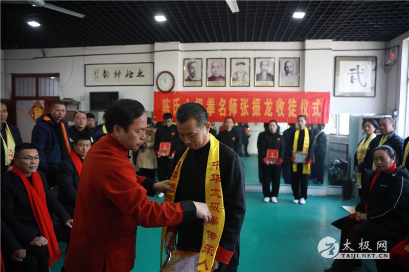 (太极网报道)2019年1月1日,正值元旦这一万象更新的喜庆日子,陈式太极拳名家张振龙老师收徒仪式于郑州中牟龙腾太极馆隆重举行。杜宛玲、蔡国民、陈联江、徐香云、王长君、王偲等六名太极拳爱好者通过重重考验正式拜入张振龙老师门下,肩负起传承太极拳、弘扬太极文化的责任。 出席活动的嘉宾有: 太极网创始人、温县太极拳传承人联合会主席刘洪奇 国家武术七段、陈正雷入室弟子、陈式太极拳十二代传人郑冬霞 国家武术七段、中牟县老一辈武术家闫国顺 郑州酒协中牟区域总经理任春奇 长垣县环保局科长刘江 濮阳县广星肉类食品厂厂长张永志 收徒仪式由太极网创始人、温县太极拳传承人联合会主席刘洪奇主持,遵循传统,简洁庄重。张振龙老师向太极拳始祖敬香,以告收徒传承再续薪火。随后弟子们依次上前向师父行拜师礼,递交拜师帖并接受师父回帖,新弟子在师父带领下叩拜太极拳始祖,感念先辈创拳之辛劳,缅怀先师传拳之恩德,以示太极拳代代相传,薪火相承的传承古礼。在众人的见证下,拜师仪式圆满完成,六位新弟子正式成为陈式太极拳传承人。 王长君作为新弟子代表发言中讲到,太极拳是中华武术之精粹,是东方文化之瑰宝,同时对于防病治病、延年益寿有着神奇的功效。“拳起于《易》,而理成于医。”太极拳在创编发展的过程中,始终贯穿着中医气功理论与经络学说。人体相关穴位的冲合产生了太极拳技击的各种劲法,奥妙无穷,是谓“医易同源”,他表示今后将更用心地学习、体悟太极拳与中医的奥妙。 张振龙老师告诫新入门的弟子要够恪守门规祖训,认真习练太极拳,用心去体悟太极文化,努力成为合格的太极拳传承人,为传播和弘扬太极拳文化作出自己应有的贡献。 张振龙老师带领众弟子重温入门宣读誓词,一声声铿锵有力的话语唤起了众人的感动,更唤起了入门时传承发扬太极拳的赤诚初心。相信张振龙老师将会带领众弟子继续砥砺前行,在弘扬太极拳的道路上更创辉煌。 国家武术七段、陈正雷入室弟子、陈式太极拳十二代传人郑冬霞老师在发言中恭喜张振龙老师觅得慧徒,同时恭喜众弟子得遇良师,更让人欣喜的是为陈式太极拳的传承注入了强有劲的新生力量。 国家武术七段、中牟县老一辈武术家闫国顺表示非常荣幸能现场见证张振龙老师喜收爱徒,希望众弟子今后能谨遵师父教诲,为早日成为优秀的太极拳传承人而不断努力。 长垣县环保局科长刘江在讲话中表示希望新弟子们能够团结同道,学有所长,将陈式太极拳推向全国,推向世界。 |